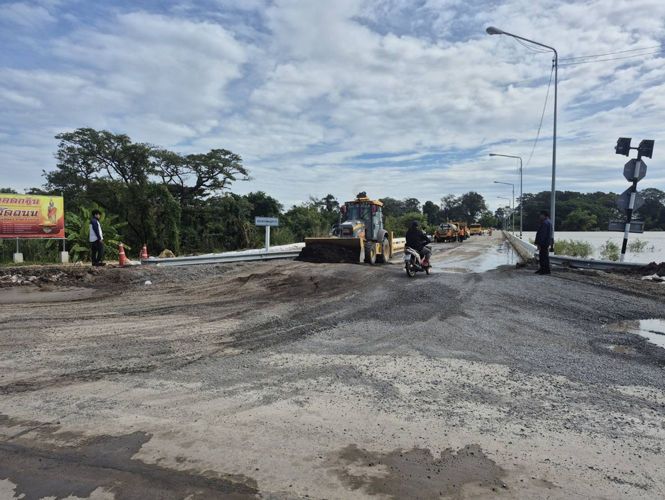 สำหรับสายทางที่ได้รับผลกระทบจากน้ำท่วม ทช. ยังคงติดตามสถานการณ์อย่างใกล้ชิด และได้ติดตั้งป้ายเตือน ป้ายบอกระดับน้ำ และปักเสาขาวแดงตามแนวเขตทาง ซึ่งหากระดับน้ำลดลงจะดำเนินการประเมินสถานการณ์และเร่งเข้าซ่อมแซมเบื้องต้นโดยเร็วที่สุดต่อไป