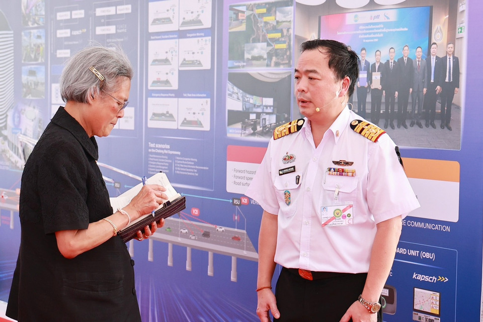 โอกาสนี้ สมเด็จพระกนิษฐาธิราชเจ้า กรมสมเด็จพระเทพรัตนราชสุดาฯ สยามบรมราชกุมารี เสด็จไปยังอาคาร Workshop Station จุดที่ 1 ทอดพระเนตรโมเดลสนามทดสอบและวีดิทัศน์ “Future mobility ศูนย์ทดสอบยานยนต์เชื่อมต่อและขับขี่อัตโนมัติ และ Workshop Station จุดที่ 2 ทอดพระเนตรเครื่องมือและระบบทดสอบสำคัญต่างๆ ภายในห้องดังกล่าว ดร.ปาษาณ กุลวานิช ผู้อำนวยการสถาบันนวัตกรรมหุ่นยนต์และยานยนต์อัตโนมัติ ได้กราบบังคมทูลถวายรายงานการใช้งาน Driving Robot ซึ่งเป็นอุปกรณ์ที่ติดตั้งบนรถทดสอบเพื่อทดแทนผู้ขับขี่ ช่วยให้การทดสอบมีความแม่นยำ สามารถบันทึกข้อมูลและตรวจสอบย้อนกลับได้ เหมาะสำหรับการทดสอบยานยนต์อัตโนมัติในระดับที่ 1–2 รวมถึง Robot Target หรือรถเป้าอัตโนมัติ ซึ่งใช้เป็นองค์ประกอบของฉากทัศน์การทดสอบ สามารถกำหนดเส้นทาง ความเร็ว และความเร่งได้ตามต้องการ โดยโครงสร้างผลิตจากวัสดุโฟมพิเศษที่สามารถสะท้อนคลื่นเรดาร์และไม่ก่อให้เกิดความเสียหายต่อรถทดสอบหากเกิดการชน ทั้งนี้ Robot Target ดังกล่าวเป็นผลงานการออกแบบและพัฒนาของกรมวิทยาศาสตร์บริการ มีสมรรถนะการขับเคลื่อนอัตโนมัติและสามารถทำความเร็วได้สูงสุดประมาณ 40 กิโลเมตรต่อชั่วโมง โดยสนามทดสอบของกรมวิทยาศาสตร์บริการสามารถรองรับการทดสอบยานยนต์อัตโนมัติได้ครบถ้วนทั้ง 5 ระดับ ตามมาตรฐานสากล