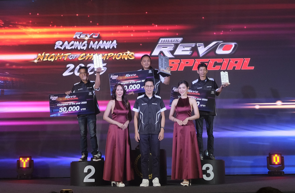 นายณัทธร ศรีนิเวศน์ ผู้ช่วยกรรมการผู้จัดการใหญ่ บริษัท โตโยต้า มอเตอร์ ประเทศไทย จำกัด เป็นประธานในพิธีมอบรางวัลให้กับผู้ชนะที่มีคะแนนสะสมรวมสูงสุดประจำปี 2025 ในการแข่งขันรถยนต์ทางตรงรูปแบบ Drag Racing ในงาน “ REVO RACING MANIA NIGHT OF CHAMPIONS 2025” ณ TOYOTA ALIVE บางนา กม.3 เมื่อวันที่ 29มกราคม 2569