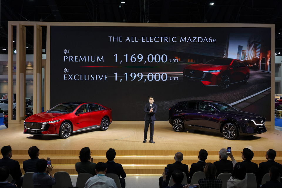 ในงาน มอเตอร์ โชว์ 2026 นอกจากมาสด้าจะได้นำยนตรกรรมเอสยูวีแห่งอนาคต The All-New Mazda CX-6e ที่พัฒนาภายใต้กลยุทธ์ Multi-solution มาให้ลูกค้าได้สัมผัสอย่างใกล้ชิดเป็นครั้งแรกในอาเซียน กับ ASEAN Premiere มาสด้ายังได้เปิดตัว The All-Electric Mazda6e ยนตรกรรมไฟฟ้ารุ่นแรกจากมาสด้าในประเทศไทย ที่มีให้เลือกทั้งหมด 2 รุ่น ได้แก่ รุ่น Premium ราคาจำหน่าย 1,169,000 ล้านบาท และรุ่น Exclusive ราคาจำหน่าย 1,199,000 ล้านบาท พร้อมมอบข้อเสนอ 1.ดอกเบี้ย 1.78% 2.ฟรีประกันภัยชั้นหนึ่ง Mazda Premium Insurance 3.ฟรี Home Charger จากแบรนด์ ABB ประเทศสวิตเซอร์แลนด์ พร้อมติดตั้งฟรี ทั่วประเทศ และ 4.ฟรี ระบบ Mazda Connectivity 5 ปี