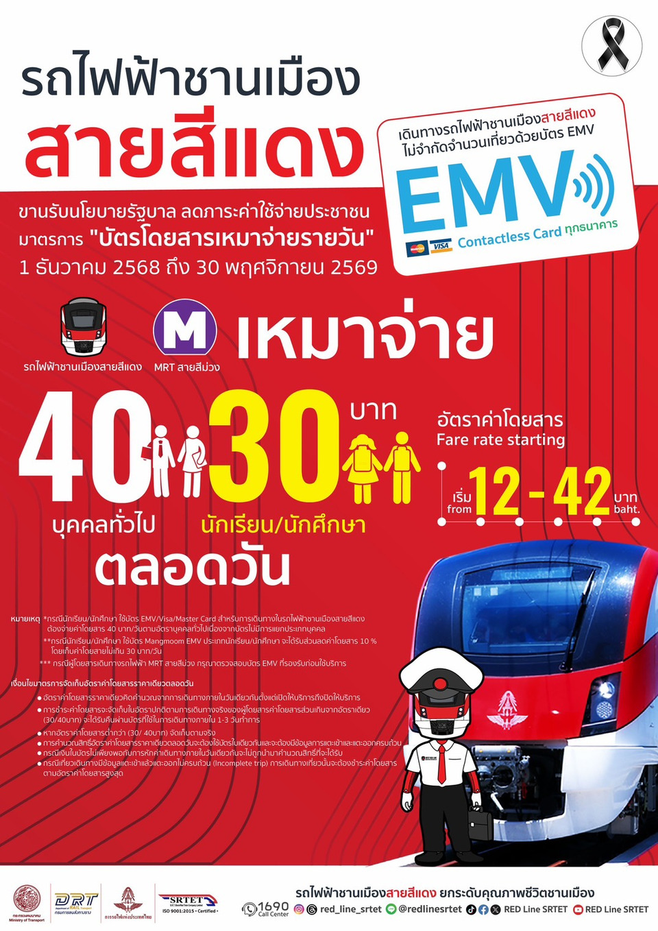 มาตรการดังกล่าวจะเริ่มตั้งแต่วันที่ 1 ธันวาคม 2568 ถึง 30 พฤศจิกายน 2569 ครอบคลุมการเดินทางด้วยรถไฟฟ้าสองระบบคือ รถไฟฟ้ามหานคร สายสีม่วง ของการรถไฟฟ้าขนส่งมวลชนแห่งประเทศไทย (รฟม.) และรถไฟฟ้าชานเมือง สายสีแดง ของบริษัท รถไฟฟ้า ร.ฟ.ท. จำกัด (รฟฟท.-ร.ฟ.ท.) ประชาชนสามารถเดินทางเชื่อมต่อกันได้ทั้งสองระบบโดยไม่จำกัดจำนวนเที่ยวตลอดวัน โดยจัดเก็บค่าโดยสารสูงสุดไม่เกิน 40 บาทต่อวันสำหรับบุคคลทั่วไป และไม่เกิน 30 บาทต่อวันสำหรับนักเรียน-นักศึกษา ทั้งนี้ เมื่อผู้โดยสารใช้บริการจนถึงอัตราเหมาจ่าย ระบบจะคิดราคาสูงสุดตามสิทธิโดยอัตโนมัติ