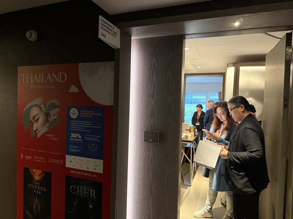 นางสาวสุนันทา กังวาลกุลกิจ อธิบดีกรมส่งเสริมการค้าระหว่างประเทศ (DITP) กระทรวงพาณิชย์ เปิดเผยถึงผลสำเร็จของการนำคณะผู้ประกอบการไทย 14 บริษัท เข้าร่วมกิจกรรมจับคู่เจรจาการค้าในงาน American Film Market 2025 (AFM) ระหว่างวันที่ 11–16 พฤศจิกายน 2568 ณ นครลอสแอนเจลิส สหรัฐอเมริกา ว่า ภารกิจในปีนี้ถือเป็นอีกก้าวสำคัญของอุตสาหกรรมภาพยนตร์ไทยบนเวทีโลก โดยคณะผู้ประกอบการไทยสามารถสร้างผลงานโดดเด่นด้วยการเจรจาการค้าได้กว่า 304 นัดหมายภายใน 6 วัน และสร้างมูลค่าทางการค้ารวม 1,031 ล้านบาท นับเป็นผลลัพธ์ที่มีมูลค่าสูงและแสดงถึงศักยภาพของไทยในตลาดซื้อขายลิขสิทธิ์ภาพยนตร์ระดับโลกอย่างเด่นชัด งาน AFM ซึ่งมีผู้เข้าร่วมราว 8,500 ราย จาก 80 ประเทศ และมีผู้จัดแสดงผลงานประมาณ 300 ราย จากสหรัฐอเมริกา อิตาลี ฝรั่งเศส สหราชอาณาจักร เกาหลีใต้ รวมถึงหน่วยงานส่งเสริมการถ่ายทำภาพยนตร์กว่า 30 แห่ง ทำให้ได้รับความสนใจมากขึ้นในปีนี้ โดยเฉพาะการกลับมาจัดงานที่ลอสแอนเจลิสอีกครั้งหลังจากปีที่แล้วสลับไปจัดที่ลาสเวกัส ส่งผลให้ผู้ซื้อรายใหญ่และแพลตฟอร์มสำคัญของโลกเข้าร่วมงานอย่างคับคั่ง