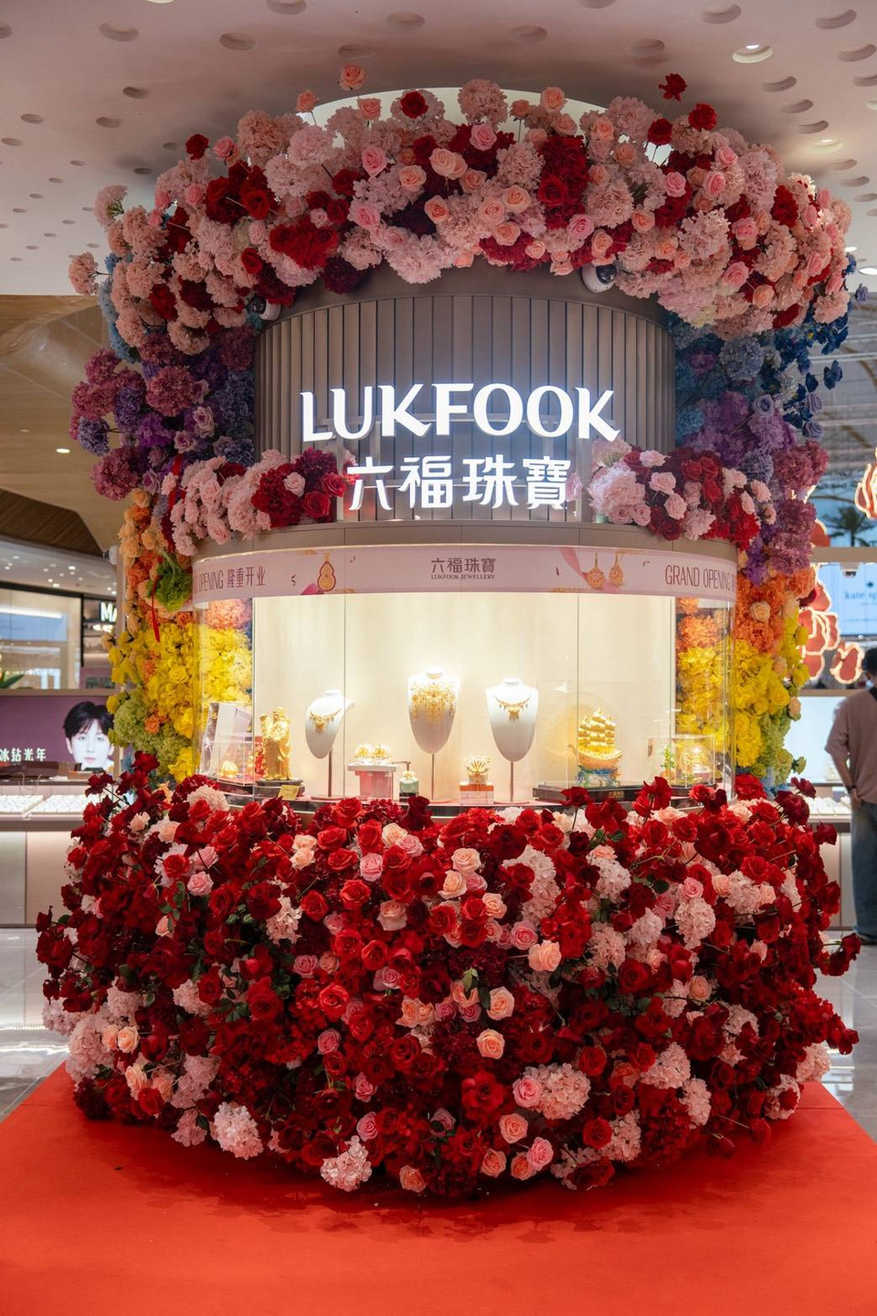 Lukfook Jewellery ได้รับการออกแบบภายใต้แนวคิด “ทะเลดอกไม้ลุกฟุก” ภายในตกแต่งด้วยดอกกุหลาบแดงและชมพูสดเรียงร้อยเป็นฉากหลังและเสาดอกไม้ใช้โทนสีแดงและทองเป็นหลัก ผสานองค์ประกอบความโรแมนติกของวันวาเลนไทน์และความมงคลของเทศกาลตรุษจีน สะท้อนอัตลักษณ์ของแบรนด์ในมิติประสบการณ์และไลฟ์สไตล์