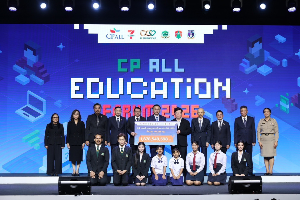 ทั้งนี้ภายในงาน “CP ALL EDUCATION FORUM 2026” ซีพี ออลล์ มอบทุนการศึกษาประจำปีการศึกษา 2569 ผ่าน 12 เครือข่ายความร่วมมือกว่า 40,200 ทุน มูลค่ารวมกว่า 1,68 ล้านบาท เพื่อสร้างโอกาสทางการศึกษาสู่เยาวชนไทยคน พร้อมขนทัพตัวแทนคนรุ่นใหม่จากภาคการศึกษา ผู้นำความคิด นำทีมดร.ศรประภา สิริภัทรวิช ผู้อำนวยการโรงเรียนสตรีศรีสุริโยทัย, ม๊าเดี่ยว-อภิเชษฐ์ เอติรัตนะ CEO / influencer, แจ๊คกี้ – จักริน กังวานเกียรติชัย CEO OTH Ent มาร่วมถ่ายทอดมุมมอง แบ่งปันประสบการณ์ ในช่วงเสวนา Go Inspire Talk หัวข้อ No Fixed Path: คนที่โลกอนาคตเลือก ไม่ได้เดินเส้นเดียวกัน อีก 1 ไฮไลท์จาก ดร.ไกรยส ภัทราวาท ผู้จัดการกองทุนเพื่อความเสมอภาคทางการศึกษา (กสศ.) ที่ชวนมองภาพใหญ่ของระบบการศึกษาและทักษะที่จำเป็นสำหรับคนรุ่นใหม่ในโลกอนาคต ผ่าน Special Talk หัวข้อ “Future-Ready People: คนที่โลกอนาคตเลือก” ภายในงานมีเครือข่ายการศึกษา คณาจารย์ นักเรียนเข้าร่วมงานกว่า 1,000 คน