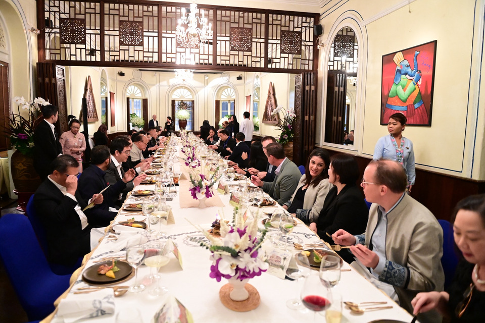 ทั้งนี้ งานเลี้ยงดังกล่าวจัดขึ้น ณ ร้านอาหาร Blue Elephant สาทร ซึ่งเป็นร้านอาหารไทยที่ได้รับตราสัญลักษณ์ Thai SELECT ระดับ 3 ดาว และมีสาขาให้บริการในหลายประเทศทั่วโลก โดยร้าน Blue Elephant ถือเป็นหนึ่งในผู้เผยแพร่อัตลักษณ์อาหารไทยสู่เวทีนานาชาติ พร้อมมีผลิตภัณฑ์ภายใต้ตราสัญลักษณ์ Thai SELECT ที่ช่วยส่งเสริมและประชาสัมพันธ์อาหารไทยให้เป็นที่รู้จักในระดับสากล