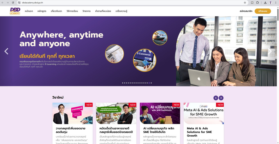 นอกจากนี้ กรมฯ ขอเชิญชวนผู้ประกอบการออนไลน์ทั้งรายเก่าและรายใหม่ เพิ่มพูนทักษะด้านการค้าออนไลน์ ผ่านระบบ DBD Academy ซึ่งจะช่วยพัฒนากลยุทธ์ด้านการขายและยกระดับธุรกิจให้เติบโตอย่างมีศักยภาพ เรียนฟรี!! ไม่มีค่าใช้จ่าย สมัครเรียนได้ทาง www.dbd.go.th >> DBD e-Learning ทั้งนี้ ผู้เรียนสามารถพิมพ์หนังสือรับรองรายวิชาจากระบบได้ทันทีหลังจากเรียนจบวิชานั้นๆ โดยกรมฯ ได้จัดหลักสูตรความรู้ด้าน e-Commerce และการค้ายุคใหม่ ประกอบด้วย 3 วิชา ดังนี้