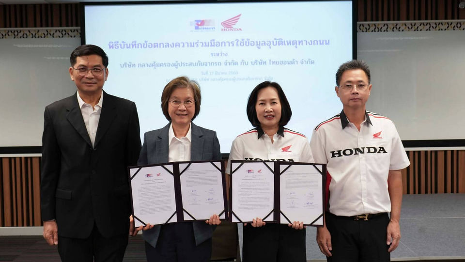 ขณะที่บ.กลางฯยังเดินหน้าพิธีลงนามความร่วมมือใช้ข้อมูลอุบัติเหตุทางถนนยกระดับการอบรมขับขี่ปลอดภัย มุ่งลดการสูญเสียบนท้องถนนไทย โดย"พรรณี ปิติกุลตัง" กรรมการผู้จัดการ บริษัท กลางคุ้มครองผู้ประสบภัยจากรถ พร้อมด้วย "สาวิตรี แก้วพวงงาม"กรรมการบริหาร บริษัท ไทยฮอนด้า ได้ ร่วมลงนามMOU ความร่วมมือด้านการใช้ข้อมูลอุบัติเหตุทางถนน เพื่อนำข้อมูลอุบัติเหตุไปใช้ในการประเมินผล และพัฒนาหลักสูตรการอบรมขับขี่ปลอดภัยสำหรับผู้ใช้รถจักรยานยนต์อย่างมีประสิทธิภาพ อันจะช่วยยกระดับมาตรฐานความปลอดภัยในการใช้รถใช้ถนน และเป็นกลไกสำคัญในการลดอุบัติเหตุ รวมถึงการสูญเสียชีวิตและทรัพย์สินบนท้องถนนของไทย ณ ห้องประชุม 501 บริษัท กลางฯสำนักงานใหญ่
