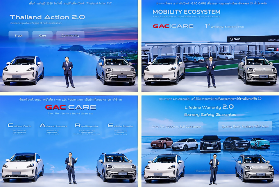Mr. Wanye Wei ประธานกรรมการบริหาร GAC International เผยความสำเร็จในปี 2568 ว่า GAC ได้บรรลุเป้าหมายในการวางรากฐานระบบนิเวศยานยนต์ไฟฟ้าได้อย่างเป็นรูปธรรมภายใต้กลยุทธ์ "In Thailand, For Thailand" ไม่ว่าจะเป็นการขยายตัวแทนจำหน่ายมากกว่า 68 แห่ง มีความพร้อมของอะไหล่ถึง 95%, สร้างสถานีชาร์จ 160 แห่ง เริ่มเดินสายการผลิตรถยนต์ 3 รุ่นหลักในประเทศ และกวาดยอดจดทะเบียนทะลุ 15,301 คัน เติบโตถึง 305% (YoY) ส่งผลให้ GAC กลายเป็นแบรนด์รถยนต์พลังงานใหม่ชั้นนำในไทยอย่างมั่นคง สำหรับแผนการขับเคลื่อน "Thailand Action 2.0" ในปี 2569 GAC เตรียมเปิดตัวรถยนต์ใหม่ 2 รุ่น, Mobility Center แห่งแรกในต่างประเทศ, นำเทคโนโลยีการสลับแบตเตอรี่ (Battery Swapping) เข้ามาเพื่อสร้างเครือข่ายพลังงานที่สมบูรณ์แบบ และเตรียมขยายกำลังการผลิตของโรงงานในไทยให้บรรลุเป้าหมาย 20,000 คันต่อปี เพื่อยกระดับประเทศไทยสู่การเป็นศูนย์กลางการส่งออกระดับโลกอย่างเป็นทางการ