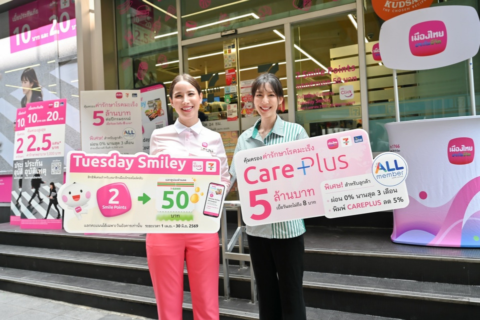 ด้านสมาชิกเมืองไทยสไมล์คลับ รับสิทธิพิเศษ Tuesday Smiley (M-Coupon) แลกคะแนนเฉพาะวันอังคารเท่านั้น ใช้เพียง 2 Smile Points แลกรับคูปองแทนเงินสดมูลค่า 50 บาท (2 สิทธิ์/1 ท่าน/ สัปดาห์) จำนวน 3,000 สิทธิ์ เพื่อชำระค่าสินค้าที่ 7-Eleven เพื่อนที่รู้ใจ ใกล้ ๆ คุณ แลกรับสิทธิ์ได้ทาง MTL Click Application และแสดง Barcode ณ จุดชำระเงินร้าน 7-Eleven ระยะเวลากิจกรรมวันที่ 1 เมษายน 2569 - 30 มิถุนายน 2569