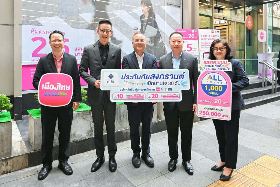 สำนักงานคณะกรรมการกำกับและส่งเสริมการประกอบธุรกิจประกันภัย (คปภ.) ร่วมกับ บริษัท เมืองไทยประกันชีวิต จำกัด (มหาชน) บริษัท ซีพี ออลล์ จำกัด (มหาชน) และ บริษัท เคาน์เตอร์เซอร์วิส จำกัด เปิดตัว “กรมธรรม์ประกันภัยสงกรานต์เบิกบานใจ (ไมโครอินชัวรันส์)” เพื่อมอบความคุ้มครองอุบัติเหตุและ สร้างความอุ่นใจให้แก่ประชาชนทั่วประเทศในช่วงเทศกาลสงกรานต์ ประจำปี 2569 โดยได้รับเกียรติจาก นายชูฉัตร ประมูลผล เลขาธิการ คปภ. นางมยุรินทร์ สุทธิรัตนพันธ์ ผู้ทรงคุณวุฒิพิเศษ สำนักงาน คปภ. พร้อมด้วย นายสาระ ล่ำซำ ประธานเจ้าหน้าที่บริหาร บริษัท เมืองไทยประกันชีวิต จำกัด (มหาชน) นายทัพพ์เทพ จีระอดิศวงศ์ รองกรรมการผู้จัดการอาวุโส บริษัท ซีพี ออลล์ จำกัด (มหาชน) และนางเพียรฑอง เฉิดรัศมี กรรมการผู้จัดการ บริษัท เคาน์เตอร์เซอร์วิส จำกัด ร่วมเปิดตัวโครงการ ณ อาคาร CP Tower 3 ถนนพญาไท