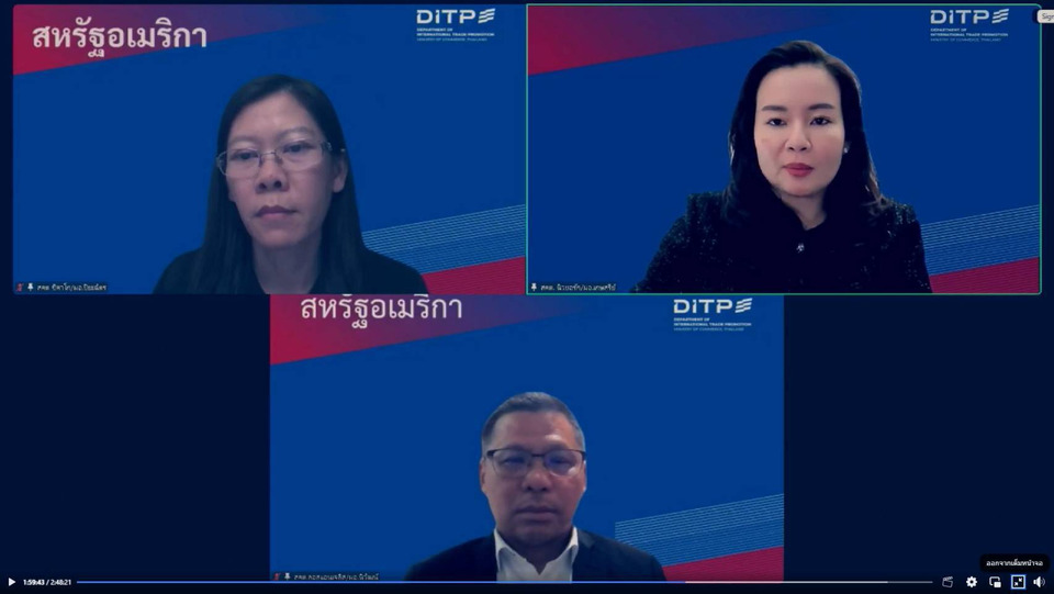 ภายในงานยังมีการสะท้อนสถานการณ์จริงจากตลาดสหรัฐอเมริกา โดยผู้อำนวยการสำนักงานส่งเสริมการค้าในต่างประเทศในเมืองสำคัญของสหรัฐฯ ร่วมถ่ายทอดประสบการณ์และข้อมูลเชิงพื้นที่ เพื่อช่วยให้ผู้ประกอบการเข้าใจบริบทตลาด พฤติกรรมผู้บริโภค และข้อควรระวังในการดำเนินธุรกิจได้อย่างรอบด้าน