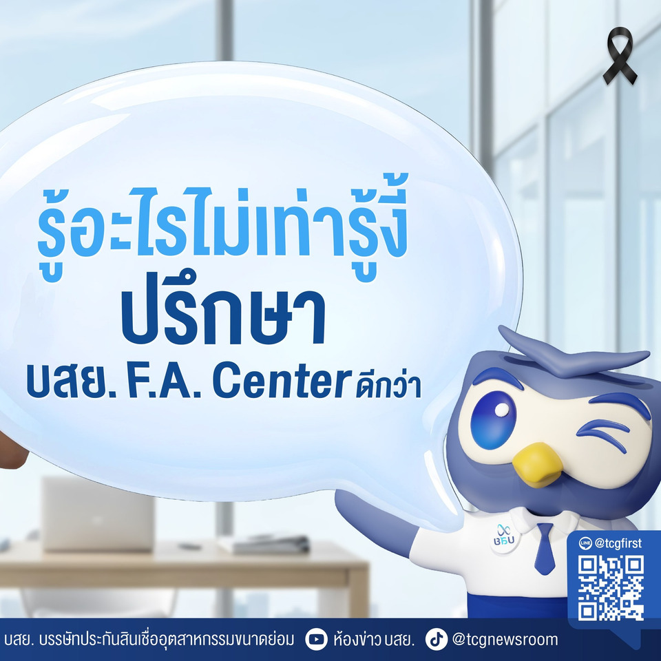 สำหรับผู้ประกอบการ SMEs ที่ประสบปัญหาทางธุรกิจ ต้องการปรับโมเดลธุรกิจให้สอดคล้องกับวิกฤตต้นทุนในขณะนี้ สามารถขอคำปรึกษาได้ที่ศูนย์ที่ปรึกษาทางการเงิน SMEs (บสย. F.A. Center) ซึ่งกระจายตัวอยู่ทั่วประเทศ ฟรี! ไม่มีค่าใช้จ่าย นอกจากนี้ บสย. ยังเพิ่มความสะดวกให้กับ SMEs สามารถเข้ามาตรวจสุขภาพทางการเงิน พร้อมจองคิวขอรับคำปรึกษาทางการเงิน ฟรี! ได้ที่ LINE OA : @tcgfirst หรือสอบถามผ่าน บสย. Call Center โทร. 02-890-9999