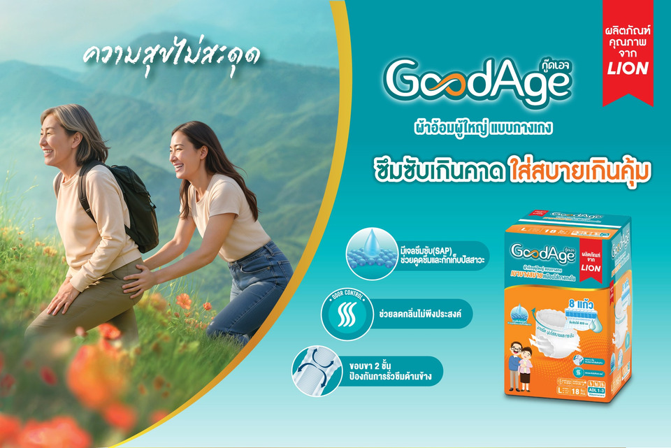 เนื่องในวันผู้สูงอายุแห่งชาติ 13 เมษายน บริษัท ไลอ้อน (ประเทศไทย) จำกัด ในฐานะผู้ผลิตและจำหน่ายสินค้าอุปโภคบริโภคที่อยู่เคียงข้างคนไทยมากว่า 57 ปี ร่วมส่งต่อความใส่ใจผ่านผลิตภัณฑ์แบรนด์ GoodAge ซึ่งได้รับการออกแบบเพื่อการดูแลสุขภาพอย่างอ่อนโยนและครบวงจร ช่วยเสริมความมั่นใจและความสะดวกสบายในการใช้ชีวิตประจำวันของผู้สูงวัย รวมถึงตอบโจทย์การดูแลสุขภาพของทุกคนในครอบครัว