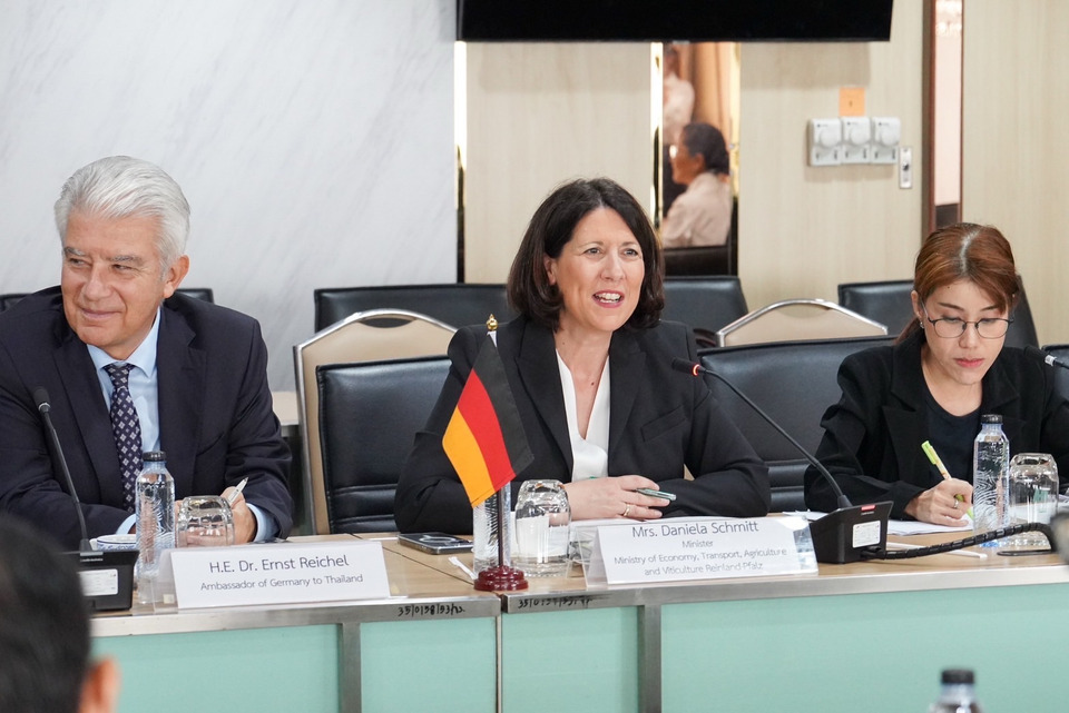 วันที่ 24 เมษายน 2569 นายวุฒิไกร ลีวีระพันธุ์ ปลัดกระทรวงพาณิชย์ เปิดเผยว่า ได้รับมอบหมายจากรองนายกรัฐมนตรีและรัฐมนตรีว่าการกระทรวงพาณิชย์ (นางศุภจี สุธรรมพันธุ์) ให้พบหารือกับนางดาเนียลา ชมิทท์ รัฐมนตรีว่าการกระทรวงเศรษฐกิจ การคมนาคม การเกษตร และการปลูกองุ่นเพื่อผลิตไวน์แห่งรัฐไรน์แลนด์-พาลาทิเนต สหพันธ์สาธารณรัฐเยอรมนี ในโอกาสนำคณะนักธุรกิจชาวเยอรมนีเดินทางเยือนประเทศไทย เพื่อแสวงหาโอกาสด้านการค้า การลงทุน และความร่วมมือในสาขาต่างๆ เมื่อวันที่ 21 เมษายน ที่ผ่านมา ณ กระทรวงพาณิชย์ โดยรัฐไรน์แลนด์-พาลาทิเนต เป็นรัฐสำคัญที่มีขนาด GDP ใหญ่เป็นอันดับ 7 ของเยอรมนี มีสินค้าสำคัญ อาทิ เคมีภัณฑ์ ยาและเวชภัณฑ์ ยานยนต์และชิ้นส่วนยานยนต์ ยานพาหนะเชิงพาณิชย์ และไวน์ ซึ่งทั้งสองฝ่ายได้แลกเปลี่ยนแนวทางการส่งเสริมความร่วมมือระหว่างกัน โดยเฉพาะด้าน Smart Farming เทคโนโลยีด้านอุตสาหกรรมการเกษตร และการใช้ปัญญาประดิษฐ์ (AI) เพื่อยกระดับภาคการเกษตร