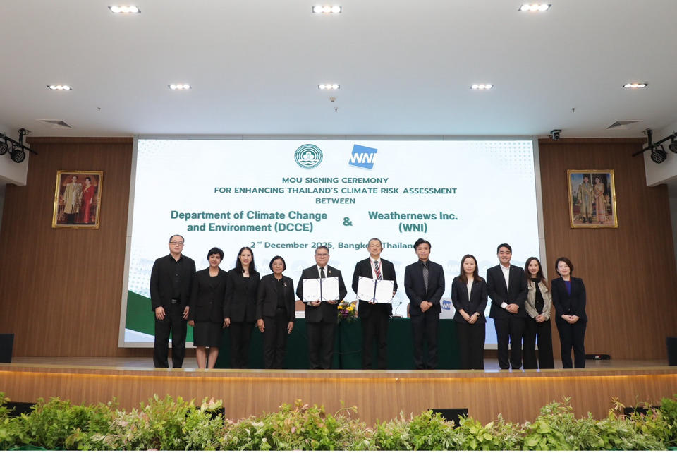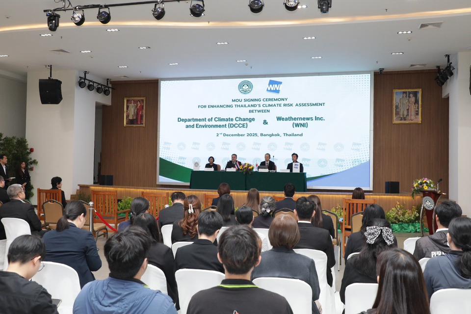วันที่ 2 ธันวาคม 2568 กระทรวงทรัพยากรธรรมชาติและสิ่งแวดล้อม โดยกรมการเปลี่ยนแปลงสภาพภูมิอากาศและสิ่งแวดล้อม (สส.) ได้ลงนามบันทึกความร่วมมือว่าด้วยการเสริมสร้างศักยภาพการประเมินความเสี่ยงจากการเปลี่ยนแปลงสภาพภูมิอากาศของประเทศไทย ระหว่าง กรมการเปลี่ยนแปลงสภาพภูมิอากาศและสิ่งแวดล้อม โดย นายปวิช เกศววงศ์ รองอธิบดีกรมการเปลี่ยนแปลงสภาพภูมิอากาศและสิ่งแวดล้อม ได้รับมอบหมายจาก ดร. พิรุณ สัยยะสิทธิ์พานิช อธิบดีกรมการเปลี่ยนแปลงสภาพภูมิอากาศและสิ่งแวดล้อม และ บริษัท เวเธอร์นิวส์ จำกัด โดยนายทาคามุเนะ ซูซุกิ ประธานเจ้าหน้าที่บริหารฝ่ายธุรกิจเทคโนโลยีสภาพภูมิอากาศ บริษัท เวเธอร์นิวส์ จำกัด และนายมาซาจิกะ นิชิบายาชิ ประธานกรรมการบริษัท เวเธอร์นิวส์ (ประเทศไทย) จำกัด เป็นสักขีพยาน และได้รับเกียรติจากนางสาวยูริเอะ โอซาวะ เลขานุการเอกสถานเอกอัครราชทูตญี่ปุ่นประจำประเทศไทย ร่วมกล่าวแสดงความยินดี ณ ห้องประชุมอารีย์สัมพันธ์ อาคารกรมการเปลี่ยนแปลงสภาพภูมิอากาศและสิ่งแวดล้อม