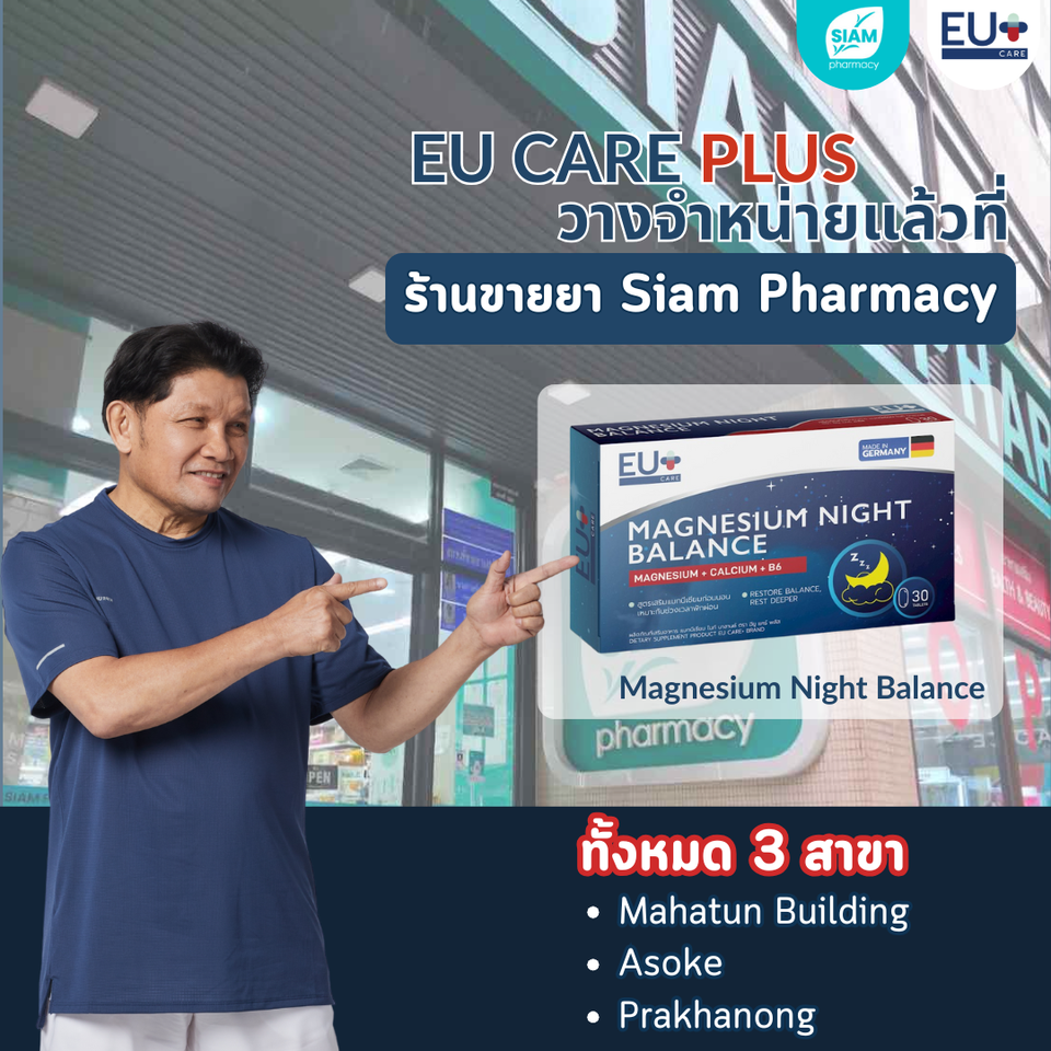 ปัจจุบัน EU CARE+ Magnesium Night Balance วางจำหน่ายแล้วผ่านร้านขายยาและศูนย์รวมผลิตภัณฑ์เพื่อสุขภาพชั้นนำ อาทิ ร้านขายยา Extension, Healthymax และร้านขายยาสยามฟาร์มาซี ในทำเลโรงพยาบาลและศูนย์การค้าสำคัญทั่วกรุงเทพฯ รวมถึงช่องทางออนไลน์อย่าง Shopee และ Lazada นอกจากนี้ ยังสามารถสั่งซื้อและขอคำปรึกษาผ่านศูนย์บริการทางโทรศัพท์ของ Top Telecenter Co., Ltd เพื่ออำนวยความสะดวกให้ผู้บริโภคเข้าถึงผลิตภัณฑ์ได้ง่ายยิ่งขึ้น