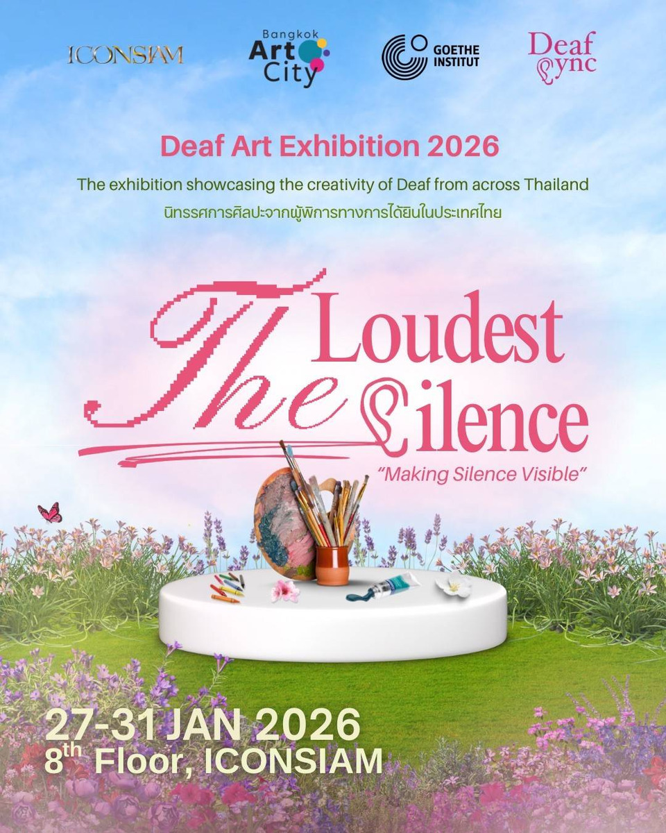 ไอคอนสยาม แลนด์มาร์กระดับโลกริมแม่น้ำเจ้าพระยา หนึ่งในพื้นที่จัดงานเทศกาลงานออกแบบกรุงเทพฯ Bangkok Design Week 2026 ร่วมกับ DeafSync กลุ่มเยาวชนผู้ขับเคลื่อนความเท่าเทียมสำหรับผู้พิการทางการได้ยิน และ สถาบันเกอเธ่ ประเทศไทย (Goethe-Institut Thailand) จัดนิทรรศการ “The Loudest Silence” โชว์ผลงานศิลปะร่วมสมัย 31 ชิ้นงาน จากศิลปินหูหนวกทั่วประเทศไทย พร้อมกิจกรรมหลากหลาย ระหว่างวันที่ 27-31 มกราคม 2569 ณ ICON Art & Culture Space ชั้น 8