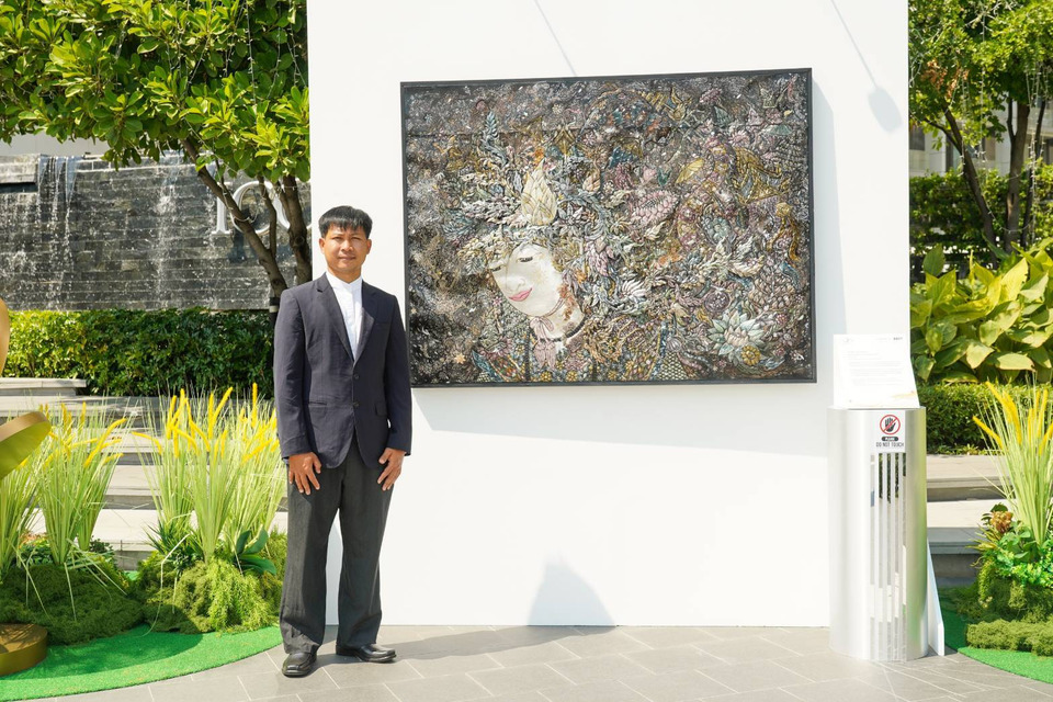 ผลงานชิ้นแรก คชสารแห่งสุวรรณภูมิ ถ่ายทอดรอยจารึกแห่งอารยธรรมบนแผ่นดินสุวรรณภูมิ ผสานเข้ากับสรีระของคชสาร โดยตัดทอนรูปทรงให้เรียบง่ายแต่ทรงพลัง ผลงานชิ้นที่สอง เบิกบาน ถ่ายทอดสภาวะแห่งความสุข และความรื่นรมย์ที่เติบโตท่ามกลางความเจริญของเมืองใหญ่ ใช้ไม้และงานฉลุ ผนวกกับการประกอบในหลายมิติ เปิดพื้นที่ให้แสงและเงาไหลผ่าน ผลงานชิ้นที่สาม ทศพิธราชธรรม แรงบันดาลใจจาก หลักธรรมแห่งผู้ปกครอง สะท้อนความงดงามของการใช้อำนาจอย่างมีคุณธรรม ผ่านโครงสร้างโลหะ และการฉลุลายอันประณีตบนสแตนเลส อะลูมิเนียม และทองแดง เปรียบเสมือนการบ่มเพาะความดีงามผ่านความมั่นคงและความเพียร