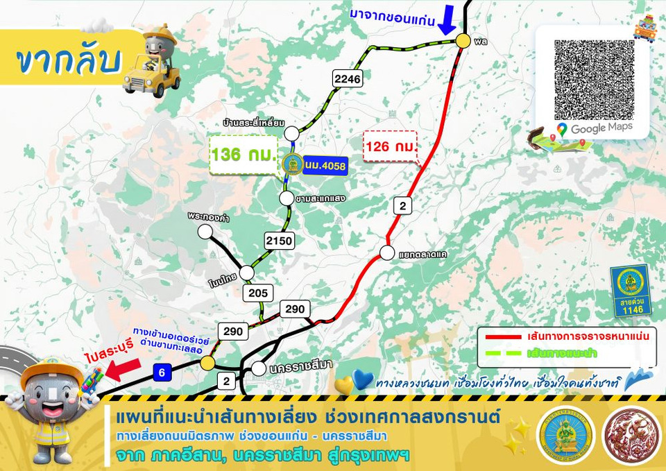 วันที่ 11 เมษายน 2569 นายพิชิต หุ่นศิริ อธิบดีกรมทางหลวงชนบท เปิดเผยว่า ในช่วงเทศกาลสงกรานต์หรือปีใหม่ของไทยที่กำลังจะผ่านพ้นไปนี้ ประชาชนในหลายพื้นที่เริ่มทยอยเดินทางกลับสู่ที่พักอาศัย ทั้งนี้ เพื่อให้การเดินทางมีประสิทธิภาพมากยิ่งขึ้น ช่วยให้ผู้ใช้ทางขับขี่ด้วยความคล่องตัว ช่วยประหยัดพลังงานให้ถึงที่หมายได้อย่างสะดวกรวดเร็วปลอดภัย กรมทางหลวงชนบท (ทช.) จึงได้คัดสรรสายทางเพื่อเป็นทางเลือกให้ประชาชนได้ใช้สัญจร จำนวน 4 เส้นทาง ดังนี้