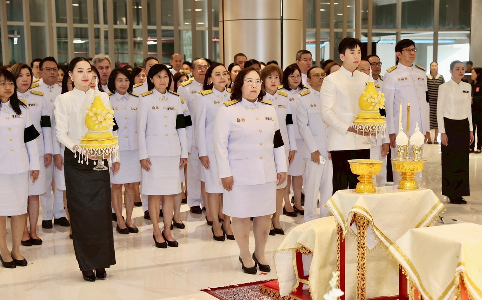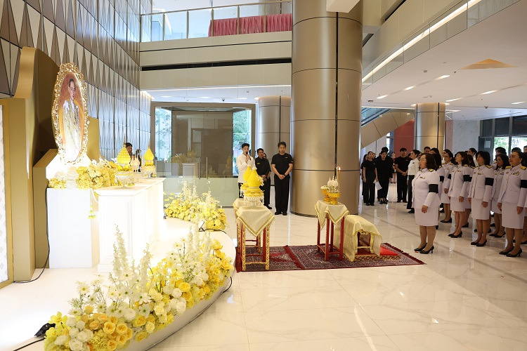 นางลภาวรรณ จันทร์กระจ่าง รองผู้อำนวยการธนาคารออมสิน รักษาการแทนผู้อำนวยการธนาคารออมสิน นำคณะผู้บริหาร และพนักงาน ร่วมพิธีน้อมรำลึกเนื่องในวันคล้ายวันพระบรมราชสมภพพระบาทสมเด็จพระบรมชนกาธิเบศร มหาภูมิพลอดุลยเดชมหาราช บรมนาถบพิตร วันชาติ และวันพ่อแห่งชาติ 5 ธันวาคม 2568 เพื่อแสดงความจงรักภักดีและน้อมรำลึกในพระมหากรุณาธิคุณที่ทรงมีต่อประเทศชาติและพสกนิกรชาวไทย ณ ธนาคารออมสินสำนักงานใหญ่ เมื่อวันที่ 4 ธันวาคม 2568