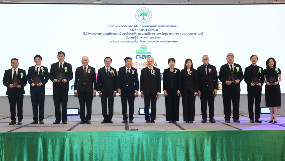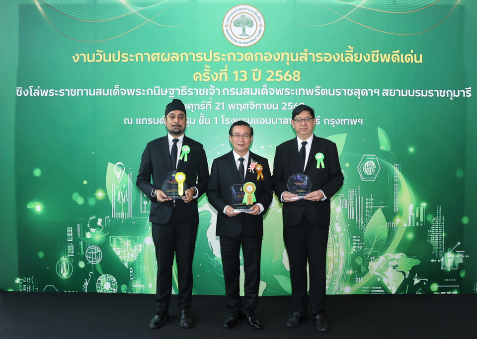 นายณัทธร โพธิแพทย์ รองผู้อำนวยการธนาคารออมสิน ในฐานะประธานกรรมการกองทุนสำรองเลี้ยงชีพ พนักงานธนาคารออมสิน ซึ่งจดทะเบียนแล้ว รับโล่รางวัลกระทรวงการคลัง รางวัลรองชนะเลิศ ประเภทกองทุนเดี่ยว (Single Fund) กองทุนสำรองเลี้ยงชีพ กลุ่มหน่วยงานรัฐวิสาหกิจ ขนาดกองทุนมากกว่า 15,000 ล้านบาท จากนายปิยกร อภิบาลศรี หัวหน้าผู้ตรวจราชการกระทรวงการคลัง ภายในงานประกาศผลการประกวดกองทุนสำรองเลี้ยงชีพดีเด่น ครั้งที่ 13 ประจำปี 2568 ซึ่งสมาคมกองทุนสำรองเลี้ยงชีพจัดขึ้น โดยมีคณะผู้บริหาร และคณะกรรมการกองทุนสำรองเลี้ยงชีพธนาคารออมสิน ร่วมแสดงความยินดี ณ โรงแรมแอมบาสซาเดอร์ กรุงเทพฯ เมื่อเร็ว ๆ นี้