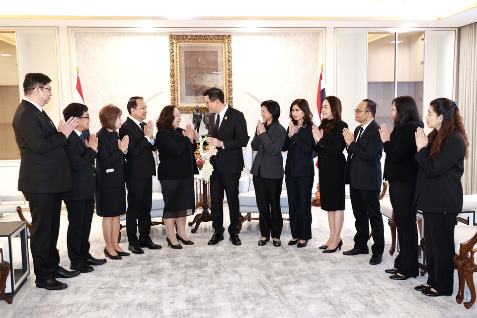 นางลภาวรรณ จันทร์กระจ่าง รองผู้อำนวยการธนาคารออมสิน รักษาการแทนผู้อำนวยการธนาคารออมสิน นำคณะผู้บริหาร เข้าพบ ดร. เอกนิติ นิติทัณฑ์ประภาศ รองนายกรัฐมนตรีและรัฐมนตรีว่าการกระทรวงการคลัง เนื่องในโอกาสสวัสดีปีใหม่ 2569 พร้อมรับคำอวยพรเพื่อเป็นขวัญกำลังใจและสิริมงคลในการปฏิบัติหน้าที่แก่ผู้บริหารและพนักงานของธนาคารออมสิน ในการดำเนินภารกิจการเป็นธนาคารเพื่อสังคม ณ กระทรวงการคลัง เมื่อวันที่ 12 มกราคม 2569