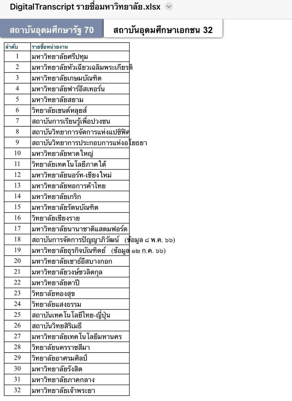 4. Digital Transcript มีจำนวนสถาบันอุดมศึกษาใช้งาน จำนวน 121 หน่วยงาน