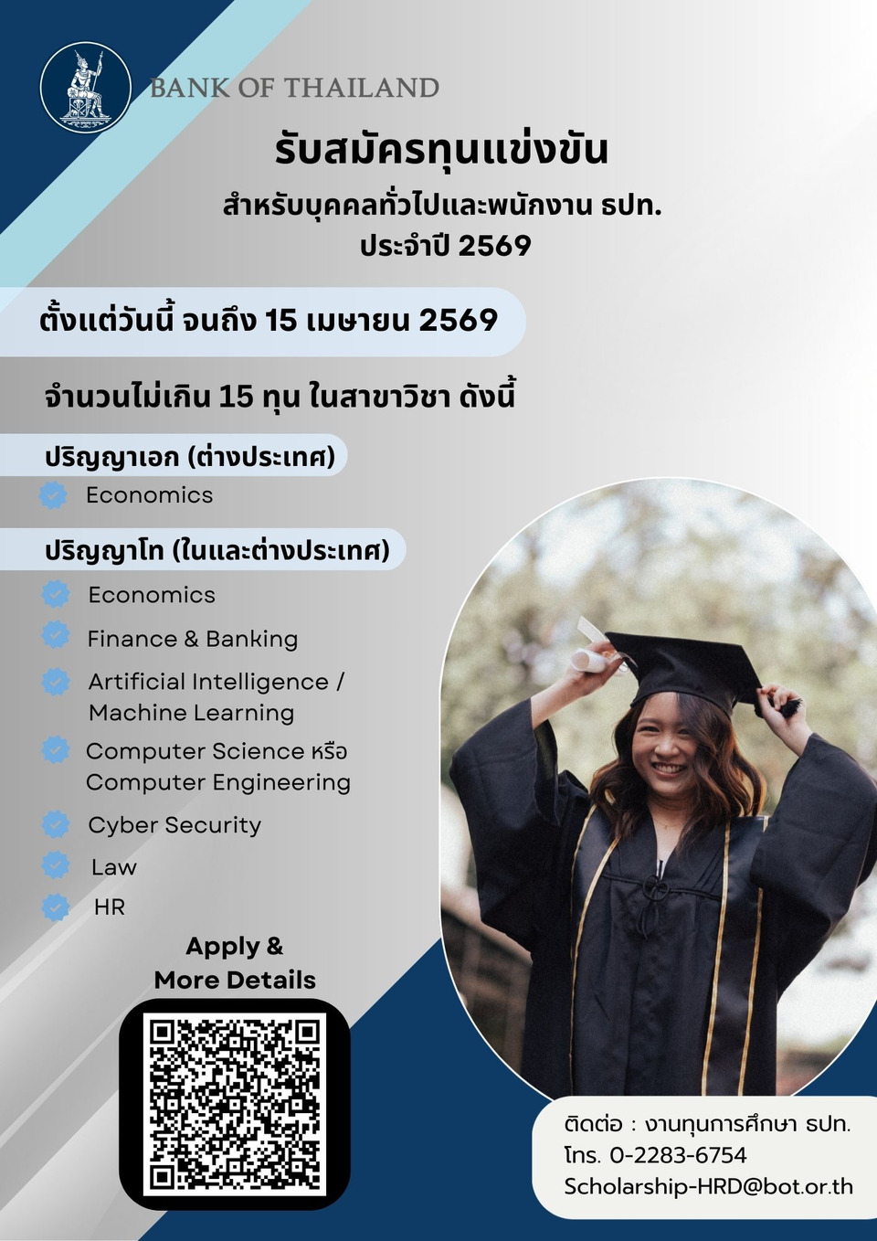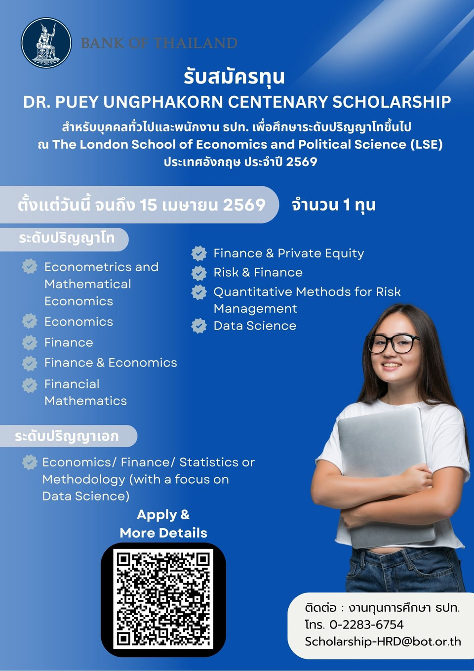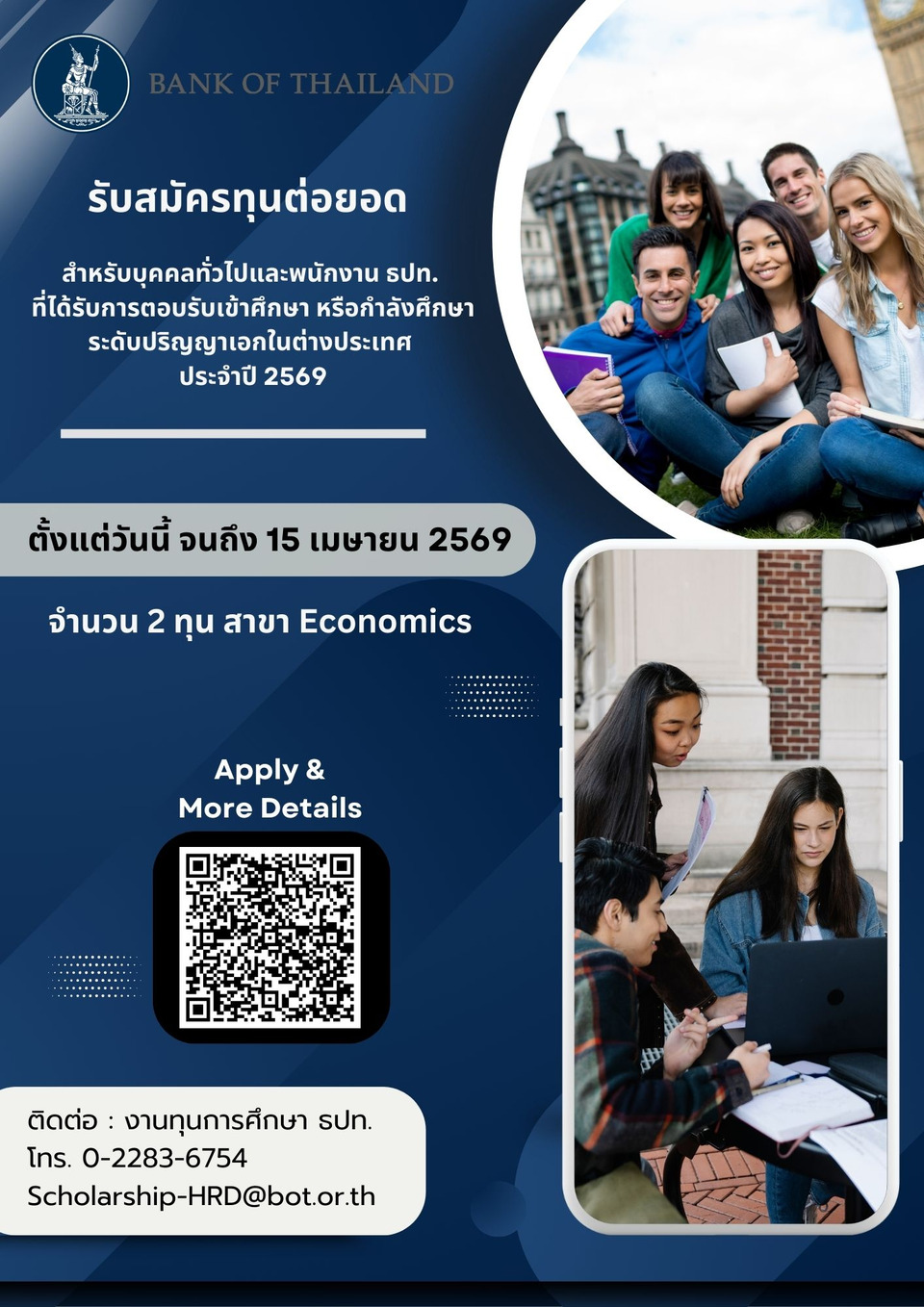 แบงก์ชาติเปิดรับสมัครทุนเรียนต่อปริญญาโท-เอกแล้ว