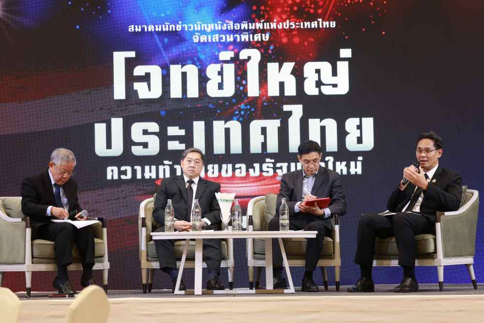 เมื่อวันที่ 5 มี.ค.69 ที่ผ่านมา ที่โรงแรม ดิ เอมเมอรัลด์ สมาคมนักข่าวนักหนังสือพิมพ์แห่งประเทศไทย จัดกิจกรรมเนื่องโอกาสครบรอบ 71 ปี วันนักข่าว 5 มีนาคม 2569 พร้อมจัด เสวนาพิเศษในหัวข้อ “โจทย์ใหญ่ประเทศไทย ความท้าทายของรัฐบาลใหม่” เพื่อเป็นเวทีสะท้อนความคิดเห็นและขับเคลื่อนสังคมในหลากหลายมิติ โดยวิทยากร ประกอบด้วย นายสมเกียรติ ตั้งกิจวณิชย์ ประธานสถาบันวิจัยเพื่อการพัฒนาประเทศไทย (ทีดีอาร์ไอ) นายดนุชา พิชยนันท์ เลขาธิการสภาพัฒนาการเศรษฐกิจและสังคมแห่งชาติ นายชัย อรุณานนท์ชัย ประธานสภาอุตสาหกรรมท่องเที่ยวแห่งประเทศไทย ร่วมเสวนา โดยมีนายวีระ ธีรภัทร สื่อมวลชนอาวุโส เป็นผู้ดำเนินรายการ