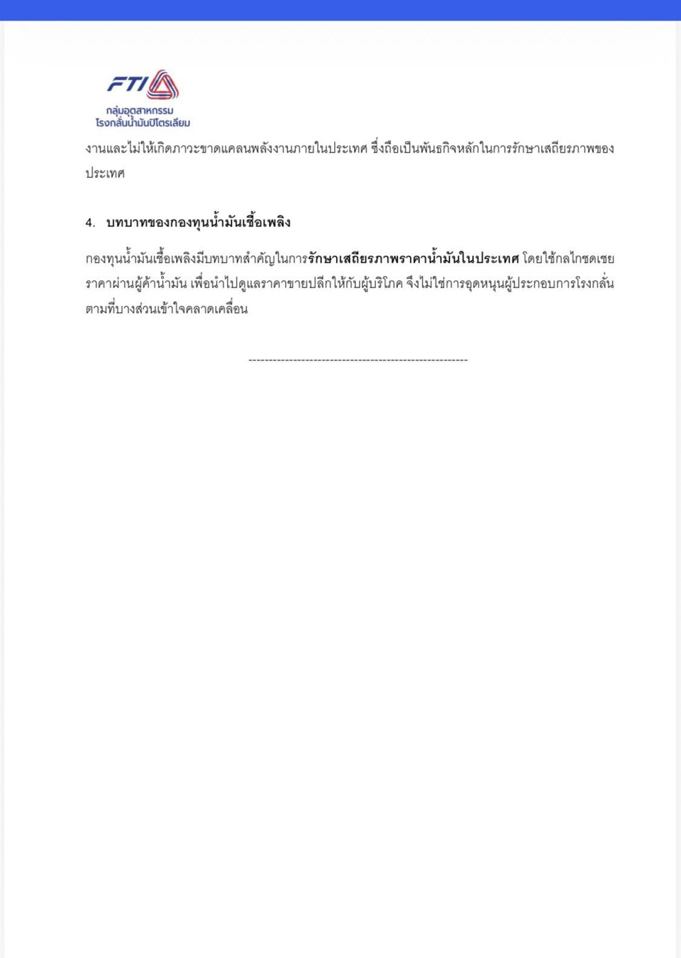 4. บทบาทของกองทุนน้ำมันเชื้อเพลิง