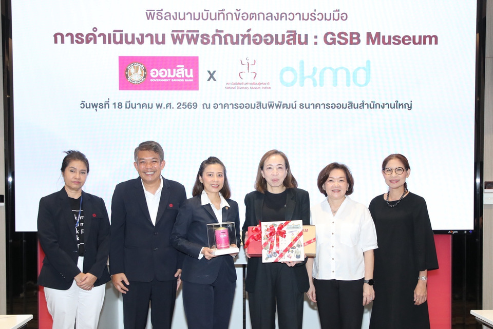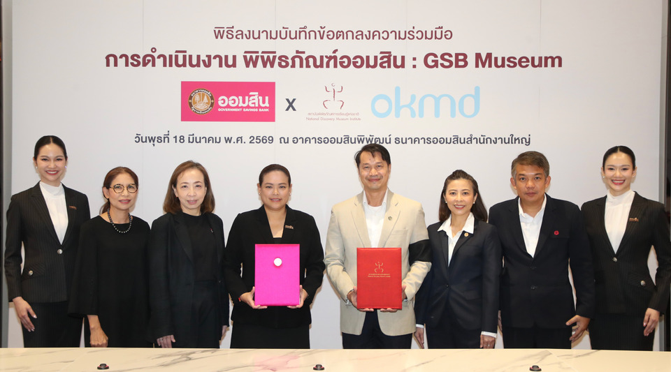 นางสาววชิรา การสุทธิ์ รองผู้อำนวยการธนาคารออมสิน กลุ่มการตลาดเพื่อความยั่งยืน และ ดร.ทวารัฐ สูตะบุตร ผู้อำนวยการสำนักงานบริหารและพัฒนาองค์ความรู้ (องค์การมหาชน) หรือ OKMD โดย สถาบันพิพิธภัณฑ์การเรียนรู้แห่งชาติ ลงนามบันทึกข้อตกลงความร่วมมือการดำเนินงาน “พิพิธภัณฑ์ออมสิน” (GSB Museum) เพื่อพัฒนาและถ่ายทอดองค์ความรู้ด้านการบริหารจัดการ การพัฒนาบุคลากร การประชาสัมพันธ์ และการดำเนินกิจกรรมที่เป็นประโยชน์ต่อการดำเนินการพิพิธภัณฑ์ออมสิน ยกระดับสู่แหล่งเรียนรู้ด้านการออมทรัพย์สำหรับประชาชน ภายใต้แนวคิดพิพิธภัณฑ์เพื่อการเรียนรู้ (Discovery Museum) โดย สถาบันพิพิธภัณฑ์การเรียนรู้แห่งชาติ จะสนับสนุนองค์ความรู้ด้านการบริหารจัดการพิพิธภัณฑ์ การพัฒนาบุคลากร และกิจกรรมที่เกี่ยวข้อง เพื่อให้การดำเนินงานเป็นไปตามมาตรฐานแหล่งเรียนรู้ในระดับสากล โดยมี นางสาวจารุพร กำธรนพคุณ ผู้ช่วยผู้อำนวยการธนาคารออมสิน สายงานการตลาดและสื่อสารเพื่อความยั่งยืน และนางสาวสุขุมาล ผดุงศิลป์ ผู้ช่วยผู้อำนวยการสถาบันพิพิธภัณฑ์การเรียนรู้แห่งชาติ ร่วมในพิธี ณ อาคารออมสินพิพัฒน์ ธนาคารออมสินสำนักงานใหญ่ เมื่อวันที่ 18 มีนาคม 2569