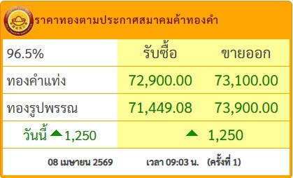 • ขายออก บาทละ 73,900 บาท