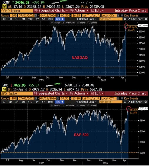 วันนี้ 15 เมษายน 2569 ดัชนีหุ้นสหรัฐ