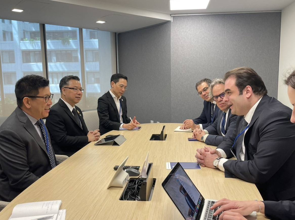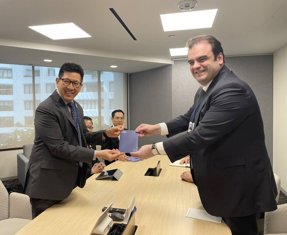 ดร.เอกนิติ นิติทัณฑ์ประภาศ รองนายกรัฐมนตรีและรัฐมนตรีว่าการกระทรวงการคลังเข้าร่วมการหารือทวิภาคีกับนาย Kyriakos Pierrakakis ประธาน EuroGroup และรัฐมนตรีว่าการกระทรวงเศรษฐกิจและการคลัง สาธารณรัฐเฮลเลนิก (กรีซ) เพื่อแลกเปลี่ยนมุมมองต่อสถานการณ์เศรษฐกิจโลกและผลกระทบต่อสหภาพยุโรปและประเทศไทย พร้อมทั้งเสริมสร้างความร่วมมือด้านเศรษฐกิจ ในห้วงการประชุมสภาผู้ว่าการธนาคารโลกและกองทุนการเงินระหว่างประเทศ (Spring Meetings) ปี 2569 ณ กรุงวอชิงตัน ดี.ซี. สหรัฐอเมริกา เมื่อวันที่ 15 เมษายน 2569