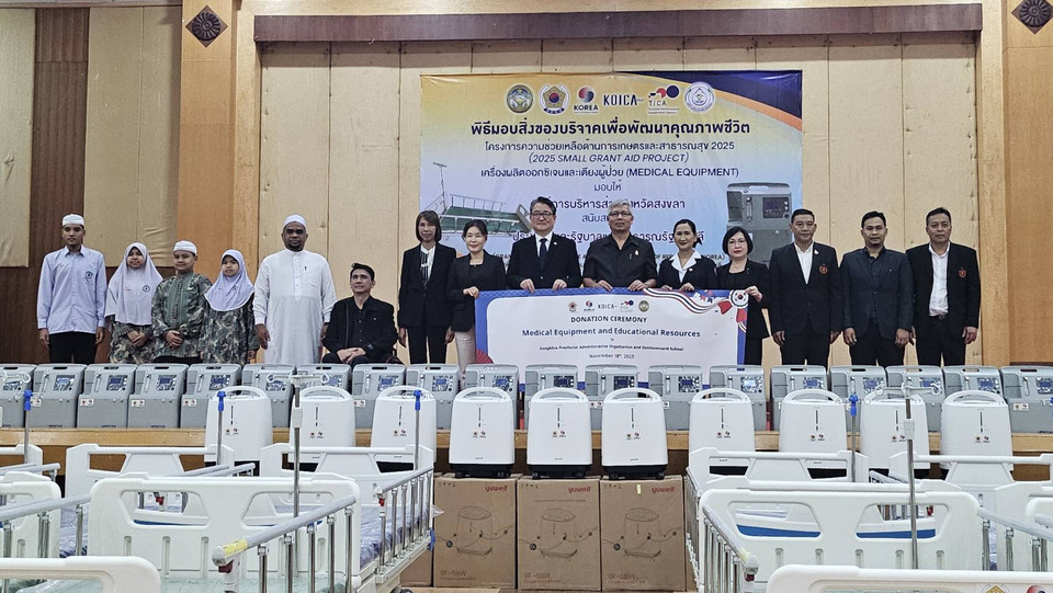 สำหรับพิธีส่งมอบสิ่งของบริจาคได้จัดขึ้นเมื่อวันที่ 18 พฤศจิกายน 2568 ที่องค์การบริหารส่วนจังหวัดสงขลาโดยความร่วมมือขององค์การความร่วมมือระหว่างประเทศของเกาหลีใต้ (KOICA) ร่วมกับกรมความร่วมมือระหว่างประเทศ (TICA) และองค์การบริหารส่วนจังหวัดสงขลา พิธีส่งมอบในครั้งนี้แสดงให้เห็นถึงพันธกิจและความตั้งใจจริงของทั้งสองประเทศในการผลักดันการเติบโตอย่างมีส่วนร่วม การพัฒนาอย่างเท่าเทียม และความเป็นอยู่ที่ดีของสังคม