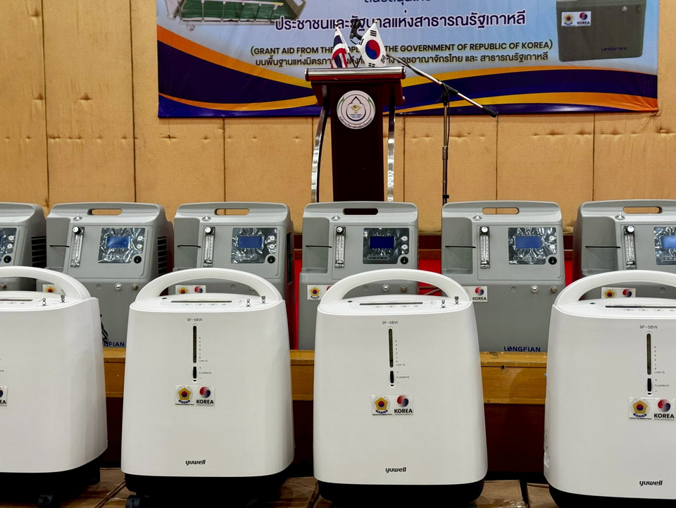 ภายใต้โครงการ “Bridging Education and Health Gaps for Vulnerable Children & People” สาธารณรัฐเกาหลี ได้ส่งมอบ เครื่องผลิตออกซิเจน 43 เครื่อง และเตียงผู้ป่วย 33 เตียง เพื่อส่งเสริมคุณภาพระบบการดูแลผู้ป่วยแบบประคับประคองให้แก่โรงพยาบาลและศูนย์ดูแลสุขภาพของชุมชนทั่วจังหวัดสงขลา พร้อมทั้งส่งเสริมโอกาสทางการศึกษา ผ่านการบริจาคหนังสือมากกว่า 3,000 เล่ม คอมพิวเตอร์ 27 ชุด และเฟอร์นิเจอร์ เพื่อสนับสนุนการจัดตั้ง ศูนย์การเรียนรู้มุ่งสู่ฝัน ณ โรงเรียนสมบูรณ์ศาสน์ เพื่อส่งเสริมโอกาสในการเรียนรู้ด้านเทคโนโลยีสารสนเทศและการสื่อสาร ให้แก่นักเรียนในโรงเรียนกว่า 500 คน รวมถึงเยาวชนในอำเภอนาทวี