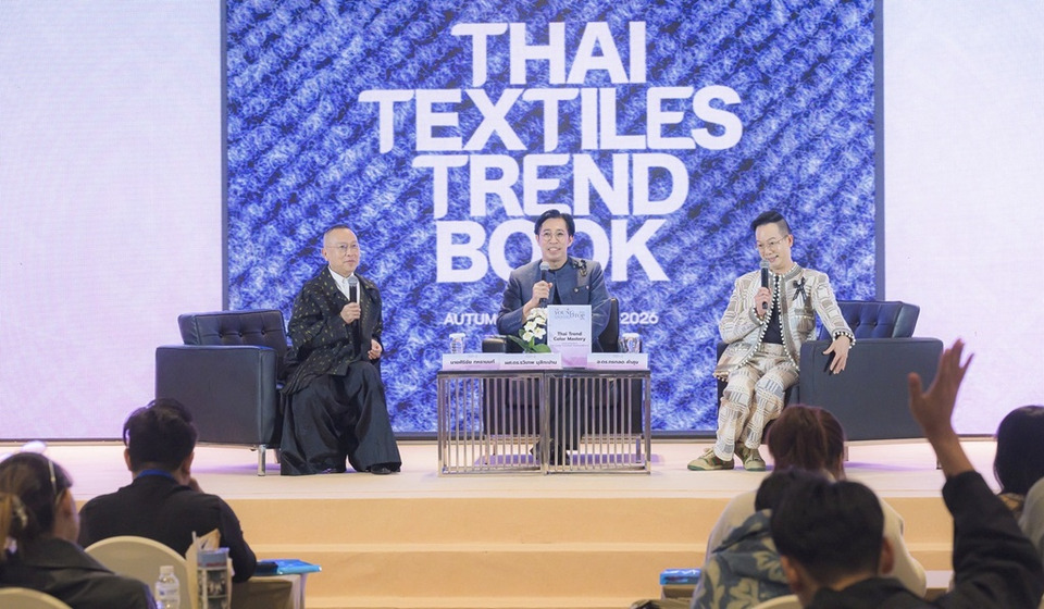 ต่อเนื่องด้วยการบรรยายหัวข้อ “Thai Trend Color Mastery เทคนิคการจับคู่สีตามเทรนด์บุ๊ค (Thai Textiles Trend Book) เพื่อพัฒนาผลิตภัณฑ์” โดยทีมผู้เชี่ยวชาญด้านการออกแบบ ได้แก่ นายศิริชัย ทหรานนท์ นักออกแบบและผู้ก่อตั้งแบรนด์ THEATRE, ผศ.ดร.รวิเทพ มุสิกะปาน ประธานหลักสูตรศิลปศาสตรบัณฑิต สาขาแฟชั่นสิ่งทอและเครื่องตกแต่ง วิทยาลัยอุตสาหกรรมสร้างสรรค์ มหาวิทยาลัยศรีนครินทรวิโรฒ และ อ.ดร.กรกลด คำสุข รองคณบดีฝ่ายกิจการพิเศษ วิทยาลัยอุตสาหกรรมสร้างสรรค์ มหาวิทยาลัยศรีนครินทรวิโรฒ ซึ่งได้ถ่ายทอดแนวคิดด้านการใช้สีและแนวโน้มแฟชั่นสิ่งทอไทยเพื่อสร้างเอกลักษณ์ให้กับผลิตภัณฑ์