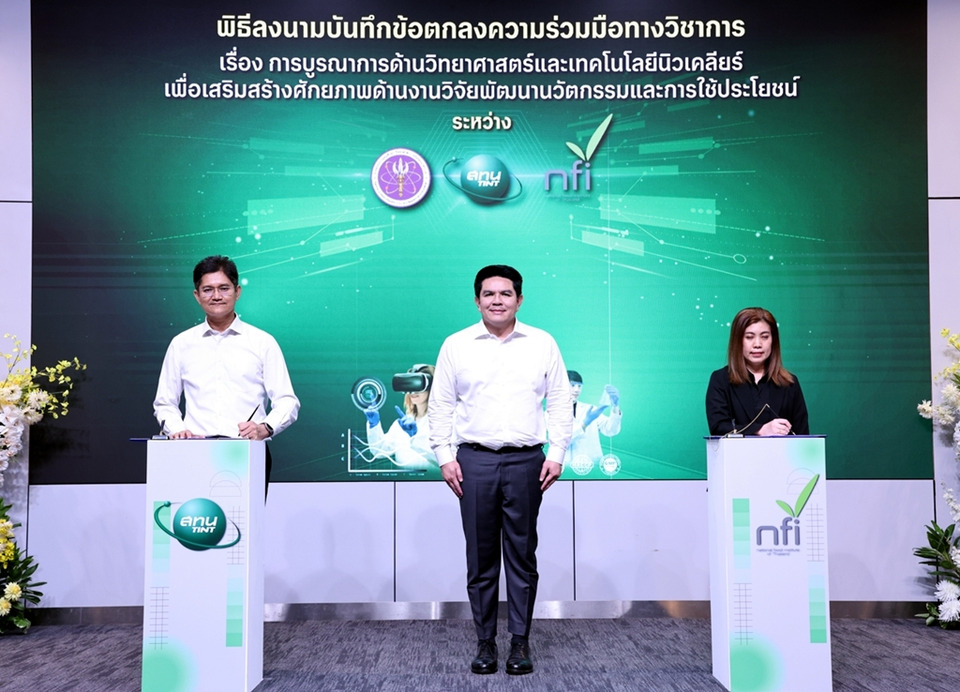 นายสุรศักดิ์ พันธ์เจริญวรกุล รัฐมนตรีว่าการกระทรวงการอุดมศึกษา วิทยาศาสตร์ วิจัยและนวัตกรรม (อว.) เป็นประธานในพิธีลงนามบันทึกข้อตกลงความร่วมมือ (MOU) เรื่องความร่วมมือในการบูรณาการด้านวิทยาศาสตร์ และเทคโนโลยีนิวเคลียร์ เพื่อเสริมสร้างศักยภาพด้านงานวิจัย พัฒนานวัตกรรมและการใช้ประโยชน์ ระหว่าง สถาบันเทคโนโลยีนิวเคลียร์แห่งชาติ (องค์การมหาชน) หรือ สทน. และสถาบันอาหาร พร้อมเปิดตัว “ศูนย์บ่มเพาะผู้ประกอบการอาหารฉายรังสีเชิงลึก เพื่อการถ่ายทอดเทคโนโลยีอย่างยั่งยืน” ภายใต้กิจกรรม “Food Ray Genius” เพื่อขับเคลื่อนผู้ประกอบการไทยสู่การเป็น Smart Enterprises ณ ห้องแถลงข่าว อาคารพระจอมเกล้า สำนักงานปลัดกระทรวงการอุดมศึกษา วิทยาศาสตร์ วิจัยและนวัตกรรม