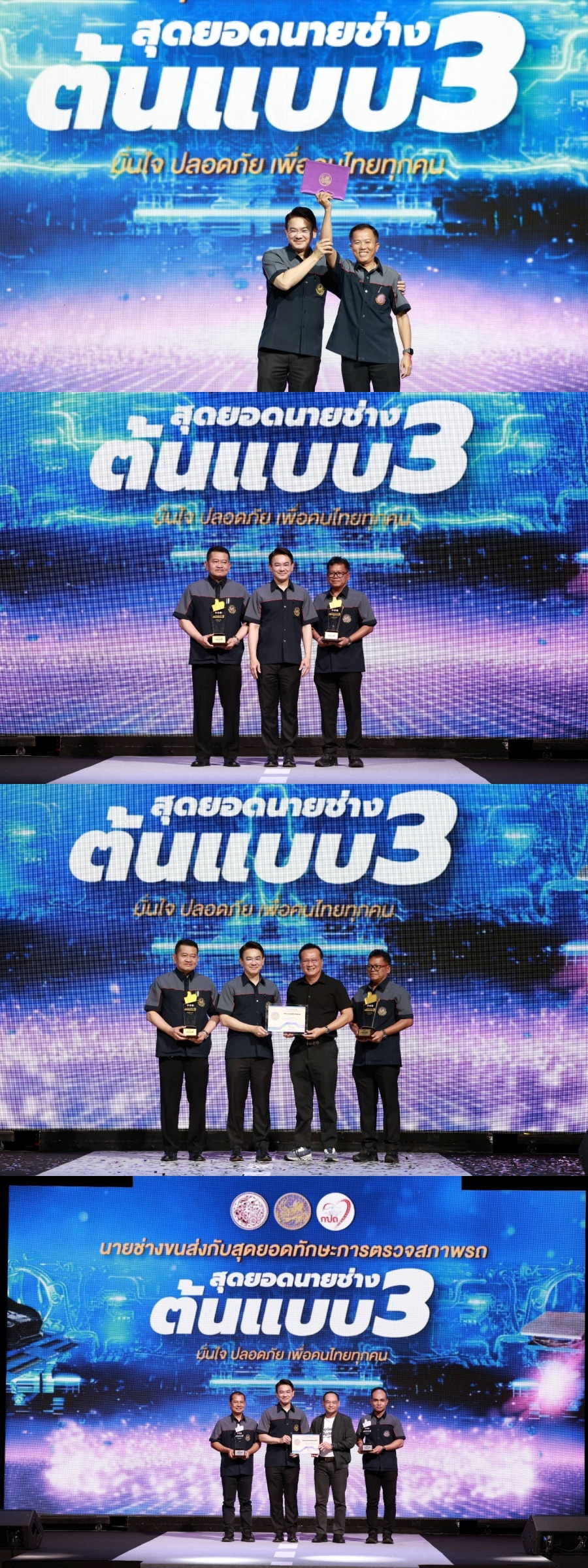 การแข่งขันในวันนี้ ได้รับเกียรติจากนายสรพงศ์ ไพฑูรย์พงษ์ อธิบดีกรมการขนส่งทางบก มอบรางวัลให้กับ ผู้ชนะ โดยผลการการแข่งขัน “สุดยอดนายช่างต้นแบบ ครั้งที่ 3” ภายใต้โครงการนายช่างตรวจสภาพรถต้นแบบ ประจำปี พ.ศ. 2568 แบ่งเป็น