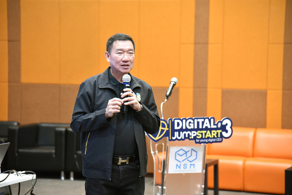คุณสุวรงค์ วงษ์ศิริ รองผู้อำนวยการ รักษาการแทนผู้อำนวยการ องค์การพิพิธภัณฑ์วิทยาศาสตร์แห่งชาติ (อพวช.) เปิดบ้านต้อนรับคณะผู้เข้าอบรมหลักสูตร Digital Jumpstart รุ่นที่ 3 (DJS#3) พร้อมแนะนำ FUTURIUM ศูนย์นวัตกรรมแห่งอนาคต ซึ่งเป็นศูนย์การเรียนรู้ด้านนวัตกรรมและทดสอบด้านอาชีพ-ทักษะแห่งแรกของประเทศไทยและอาเซียน โดยมีจุดมุ่งหมายเพื่อสร้างแรงบันดาลใจและการเรียนรู้ด้านวิทยาศาสตร์ เทคโนโลยีและนวัตกรรม ให้แก่เยาวชนและประชาชนไทย พร้อมเผชิญอนาคตอย่างมีวิสัยทัศน์และยั่งยืน จากนั้น ดร.กรรณิการ์ เฉิน รองผู้อำนวยการ องค์การพิพิธภัณฑ์วิทยาศาสตร์แห่งชาติ นำคณะผู้เข้าอบรมเยี่ยมชม FUTURIUM โดยภายในงานได้มีการจัดแสดงนิทรรศการที่หลากหลาย เช่น นวัตกรรมด้านเทคโนโลยีการบินและอวกาศ นวัตกรรมด้านหุ่นยนต์ นวัตกรรมการจัดการภัยพิบัติ และนวัตกรรมด้านการเกษตร เป็นต้น นอกจากนี้ยังมีโซนแนะแนวอาชีพในอนาคต ที่ให้ผู้เข้าชมได้ลองสวมบทบาทจริง