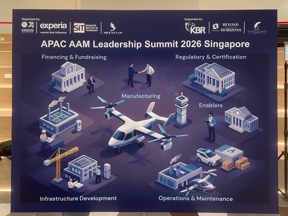 ฝ่ายกิจการต่างประเทศ นางดารินา เกื้อสกุล ผู้อำนวยการฝ่ายมาตรฐานและความปลอดภัยท่าอากาศยาน พร้อมด้วยพนักงาน AOT เข้าร่วมงาน APAC Advanced Air Mobility (AAM) Summit 2026 เมื่อวันที่ 2 กุมภาพันธ์ 2569 ณ Singapore Institute of Technology สาธารณรัฐสิงคโปร์