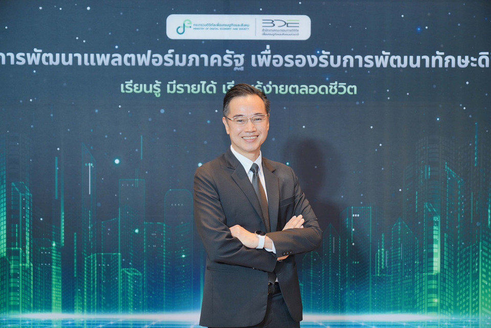 วันที่ 25 กุมภาพันธ์ 2569 กระทรวงดิจิทัลเพื่อเศรษฐกิจและสังคม โดยสำนักงานคณะกรรมการดิจิทัลเพื่อเศรษฐกิจและสังคมแห่งชาติ (BDE : National Board of Digital Economy and Society) จัดงานแถลงข่าวเปิดตัวและพิธีลงนามบันทึกความเข้าใจ (MOU) “โครงการพัฒนาแพลตฟอร์มภาครัฐเพื่อรองรับการพัฒนาทักษะดิจิทัล เรียนรู้ มีรายได้ เรียนรู้ง่ายตลอดชีวิต หรือ BDE Learn to Earn” ณ ห้องประชุม Asawin Ballroom A โรงแรม Asawin Grand Convention กรุงเทพฯ โดยมีนายเวทางค์ พ่วงทรัพย์ เลขาธิการคณะกรรมการดิจิทัลเพื่อเศรษฐกิจและสังคมแห่งชาติ เป็นประธานในพิธีเปิด พร้อมด้วยนางสาวพลอยรวี เกริกพันธ์กุล ผู้อำนวยการกองขับเคลื่อนดิจิทัลเพื่อสังคม กล่าวรายงานวัตถุประสงค์และแนวทางดำเนินโครงการ โดยผู้เข้าร่วมงานมาจากทั้งหน่วยงานภาครัฐ ภาคเอกชน สถาบันการศึกษา และสื่อมวลชน