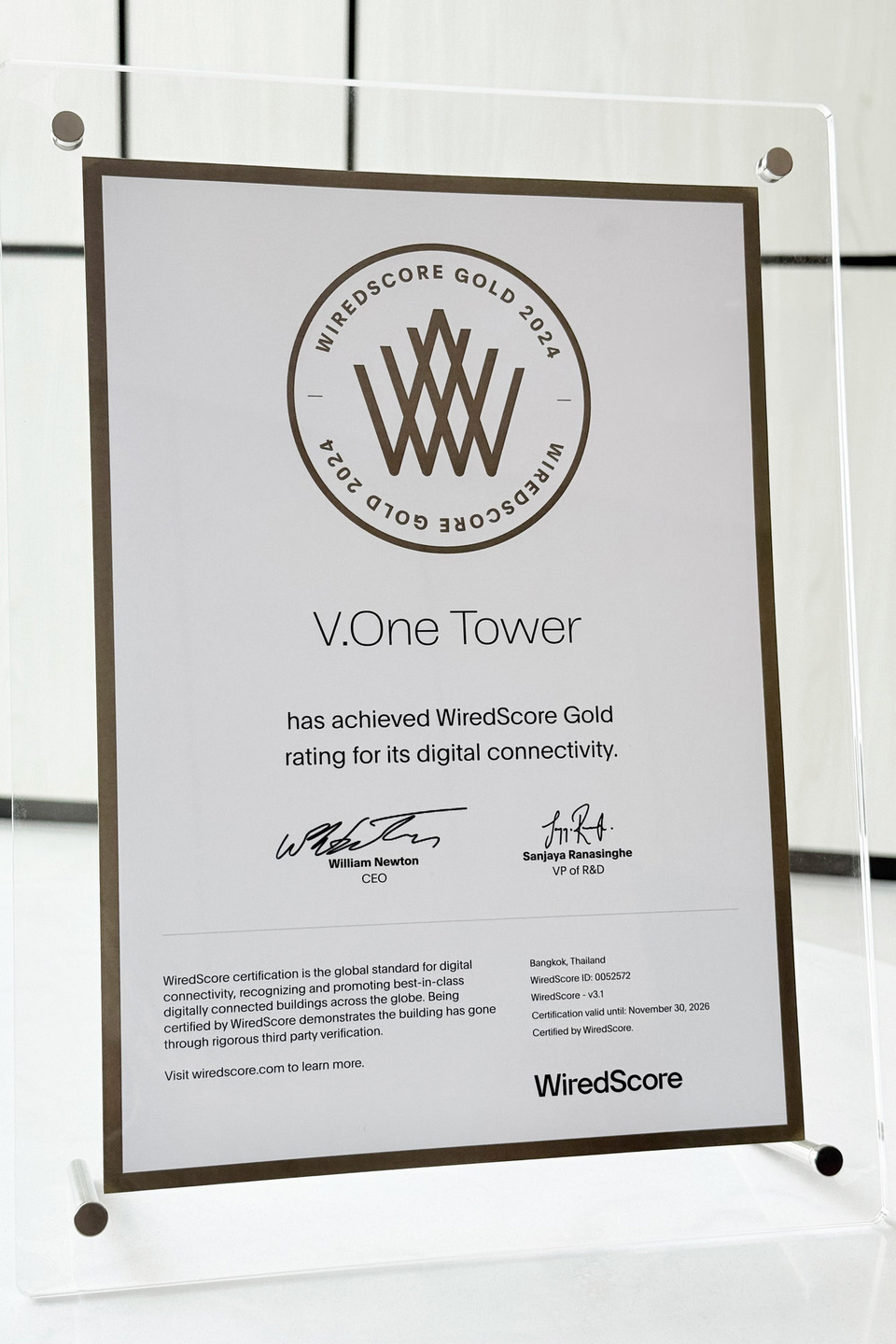 ด้าน WiredScore องค์กรผู้กำหนดมาตรฐานรับรองการเชื่อมต่อทางดิจิทัลสำหรับธุรกิจอสังหาริมทรัพย์ระดับโลก โดย Queenie Tang, Head of Southeast Asia, WiredScore กล่าวว่า ความสำเร็จของ วี.วรรณ ทาวเวอร์ นับเป็นมาตรฐานสำคัญสำหรับอาคารสำนักงานแห่งอนาคต สะท้อนความมุ่งมั่นในการยกระดับประสิทธิภาพอาคารในระยะยาวควบคู่กับการยกระดับประสบการณ์ของผู้เช่า ซึ่งสำหรับผู้เช่าแล้ว สิ่งนี้หมายถึงความมั่นคงด้านการเชื่อมต่อ ความยืดหยุ่น และความสามารถในการรองรับความต่อเนื่องทางธุรกิจ ซึ่งเป็นปัจจัยสำคัญในการตัดสินใจเช่าพื้นที่ในองค์กรชั้นนำ