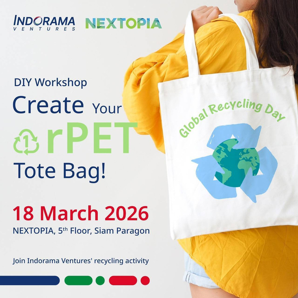 ภายในงาน Global Recycling Day ผู้เข้าร่วมจะได้ร่วมกิจกรรมสร้างสรรค์ ที่เชื่อมโยงแนวคิด ความยั่งยืนเข้ากับไลฟ์สไตล์ ผ่านกิจกรรม DIY ระบายสีกระเป๋าผ้ารีไซเคิลจากเส้นใย PET โดยความร่วมมือของ อินโดรามา เวนเจอร์ส และ oGGA idea เปิดโอกาสให้ผู้เข้าร่วมได้เรียนรู้ การคัดแยกขยะ อย่างถูกวิธี พร้อมออกแบบกระเป๋าผ้าในสไตล์ของตนเองและนำกลับบ้านเป็นของที่ระลึกสุดพิเศษ ผู้สนใจสามารถเข้าร่วม กิจกรรมได้ง่าย ๆ เพียงนำ ขวดน้ำดื่ม PET ใช้แล้วจำนวน 3 ขวด มาแลกสิทธิ์เข้าร่วมกิจกรรมในวันที่ 18 มีนาคม 2569 ณ NEXTOPIA ชั้น 5 สยามพารากอน และพิเศษสำหรับ 5 ท่านแรกที่นำขวด PET ใช้แล้วครบ 20 ขวด รับ กระเป๋าผ้าพกพาแบบพับได้ฟรี 1 ใบ