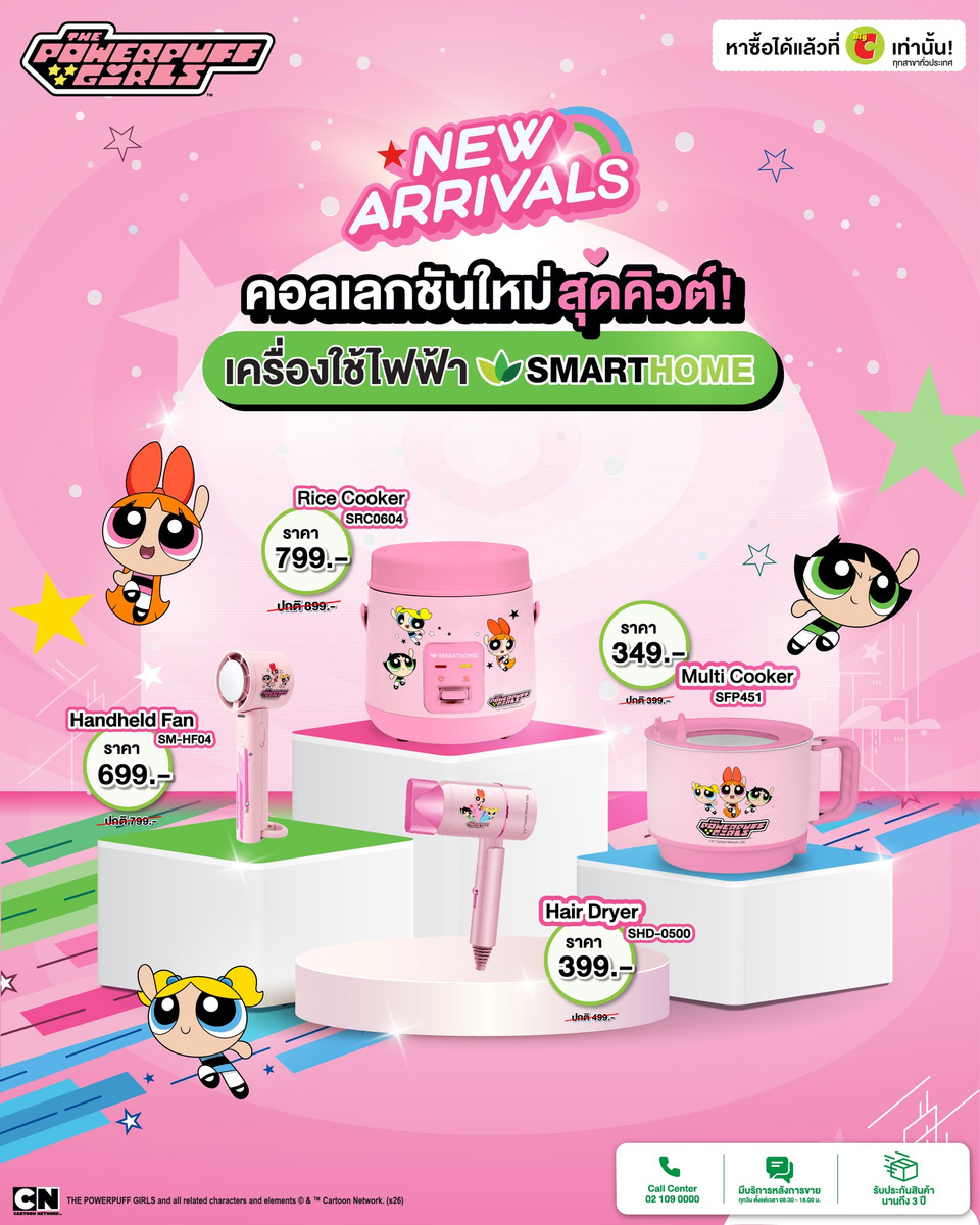 The Powerpuff Girls Collection จาก SMARTHOME วางจำหน่ายแล้ววันนี้ ที่ห้างสรรพสินค้า Big C ทุกสาขาทั่วประเทศ หรือ ช้อปออนไลน์ได้ที่ https://bit.ly/4cFzxUo