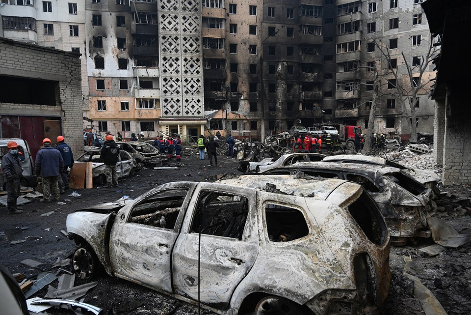 ทีมกู้ภัยและแพทย์ของยูเครนยังคงปฏิบัติการกู้ผู้รอดชีวิตท่ามกลางซากอาคารอยู่อาศัยที่ถูกทำลายอย่างหนัก หลังเกิดการโจมตีทางอากาศของรัสเซียเมื่อวันที่ 19 พฤศจิกายน 2025 ซึ่งสร้างความเสียหายรุนแรงในเมืองเติร์โนพิล ทางตะวันตกของยูเครน