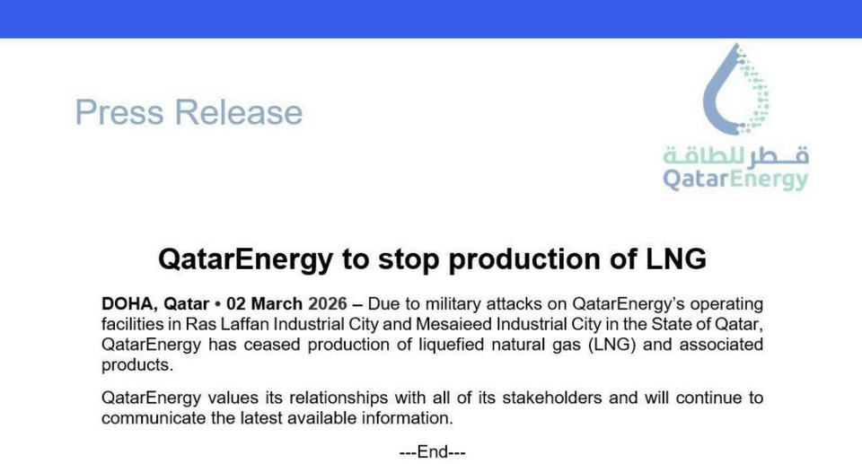 วันที่ 2 มี.ค.2569 บริษัท Qatar Energy ออกแถลงการณ์ประกาศระงับการผลิตก๊าซธรรมชาติเหลว (LNG) และผลิตภัณฑ์ที่เกี่ยวข้องเป็นการชั่วคราว หลังจากเกิดเหตุโจมตีทางทหารต่อโรงงานปฏิบัติการของบริษัทในเขตอุตสาหกรรมราสลาฟฟาน (Ras Laffan Industrial City) และเขตอุตสาหกรรมเมไซอีด (Mesaieed Industrial City) ภายในรัฐกาตาร์