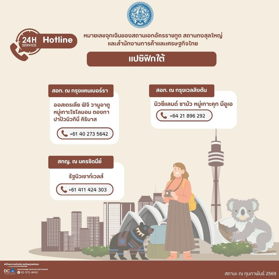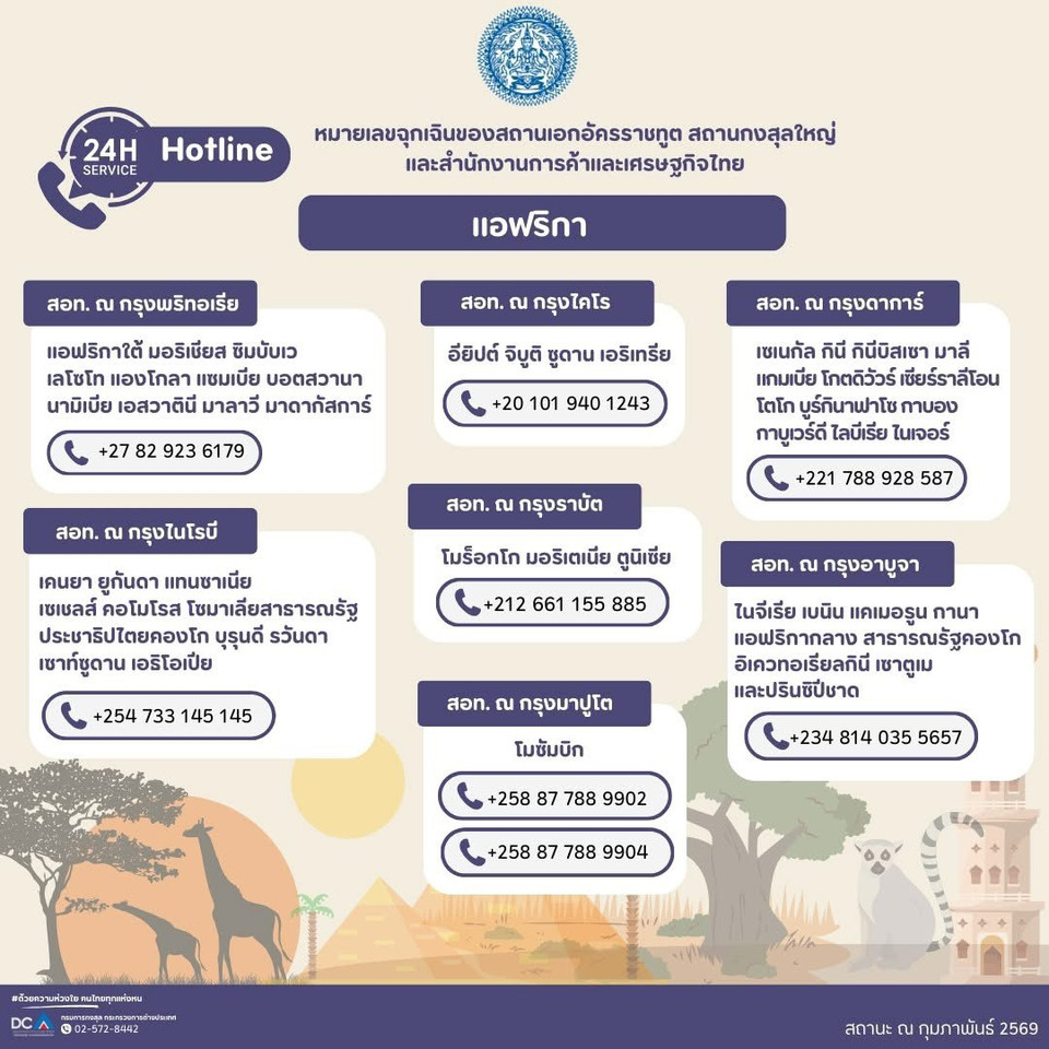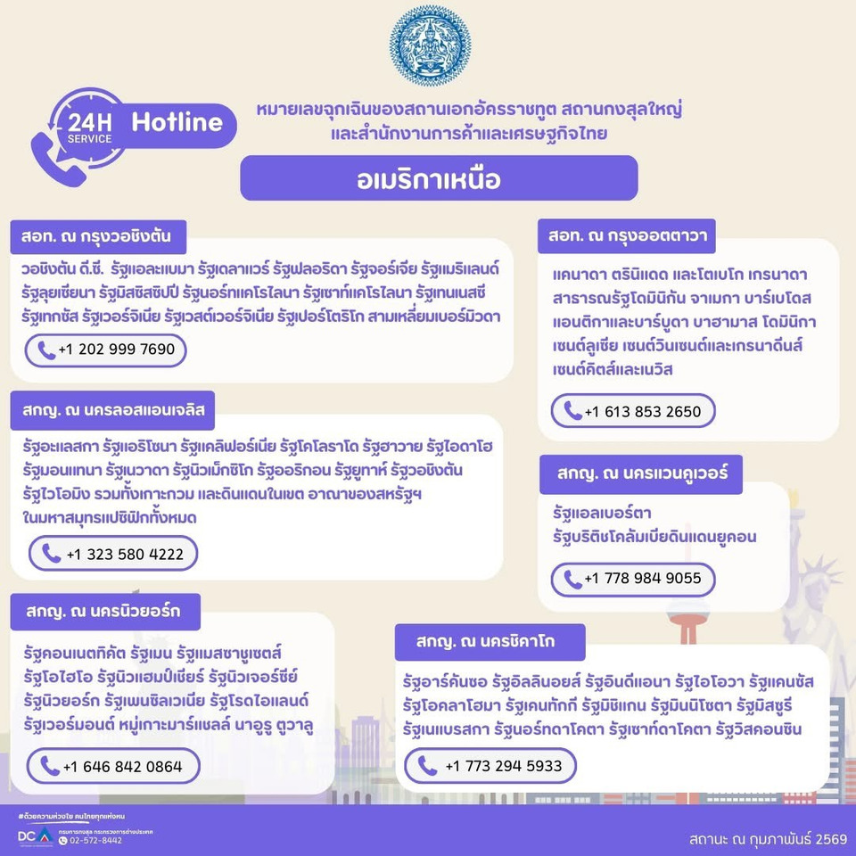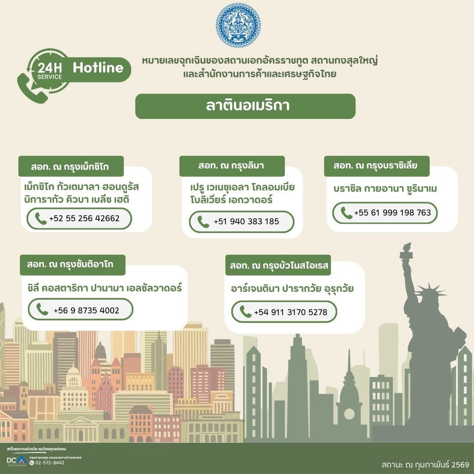 #กรมการกงสุล #กระทรวงการต่างประเทศ #ด้วยความห่วงใยคนไทยทุกแห่งหน #การทูตเพื่อประชาชน #หมายเลขฉุกเฉิน #Hotline
