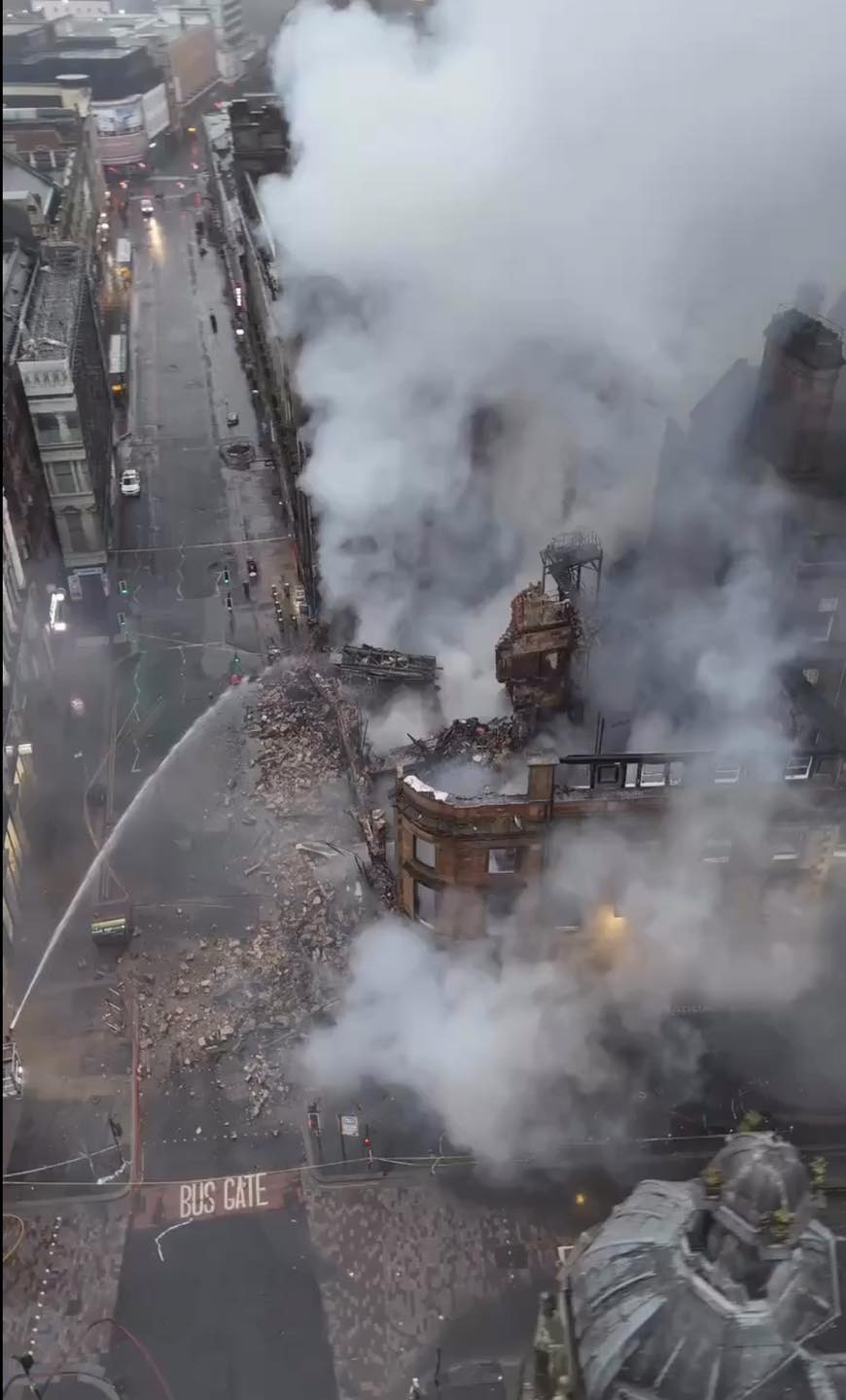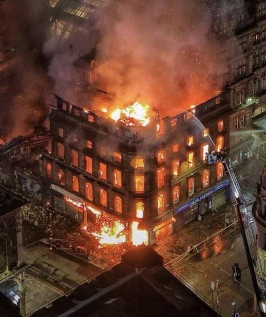 ระทึกกลางกลาสโกว์! ไฟนรกเผาผลาญอาคารประวัติศาสตร์ถล่ม สถานีรถไฟหลักหยุดชะงัก