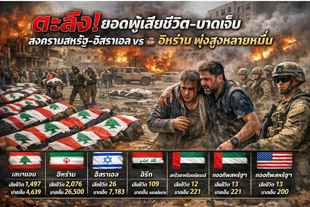 ตะลึง! ยอดผู้เสียชีวิต–บาดเจ็บสงครามสหรัฐ-อิสราเอล vs อิหร่าน พุ่งสูงหลายหมื่น